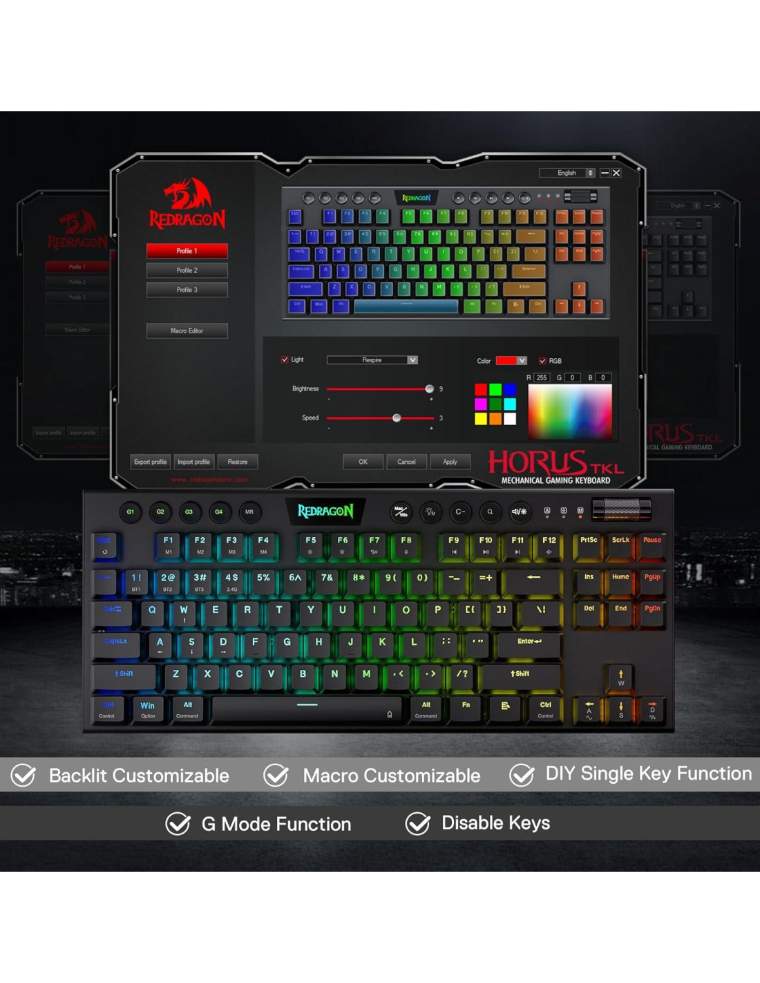 Hasta 20 modos de retroiluminación vibrantes preestablecidos que se pueden ajustar fácilmente con FN + Ins, el brillo también es ajustable mediante la sección de desplazamiento. El logo de Redragon lleno de los mismos colores RGB ofrece un impulso extra para los jugadores. Con un potente soporte de software, cualquier modo de retroiluminación, reasignaciones de teclas o grabaciones de macros de teclas combinadas se habilitan para un fácil acceso. Mejora tu eficiencia laboral y rendimiento en juegos de la mejor manera. Pesa solo 178g (6.2 oz) Cómodo de usar todo el día. ¡Rosa! Sí, ahora está disponible en ROSA, lindo y atractivo. Tipos disponibles para cualquier modificación de teclado Táctil, Lineal, Silencioso, Tenemos lo que deseas.