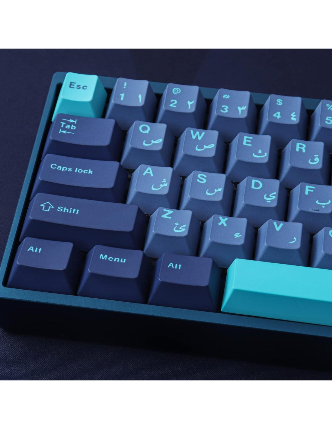 El Mar Arábigo está inspirado en el misterioso y profundo Mar Arábigo, que nutre la Península Arábiga y la cultura árabe. Estas teclas están hechas de material PBT duradero y anti-grasa, resistencia al desgaste y alta resistencia a la temperatura. Teclas de altura perfil Cherry, mayor aumento de la superficie de contacto entre las teclas y los dedos, te brindan una experiencia de escritura duradera y cómoda, se siente excelente. La sublimación tintada es un proceso de impresión muy efectivo que crea gráficos de nivel experto. Al usar este método, las imágenes no se agrietarán ni desgastarán después de varios usos y los visuales durarán tanto como sea necesario. 134 teclas con barra espaciadora de 7u se pueden usar para la mayoría de los teclados mecánicos con interruptores MX, apto para teclado mecánico de diseño US del 60%, 75%, 80%, 85%, 100%.