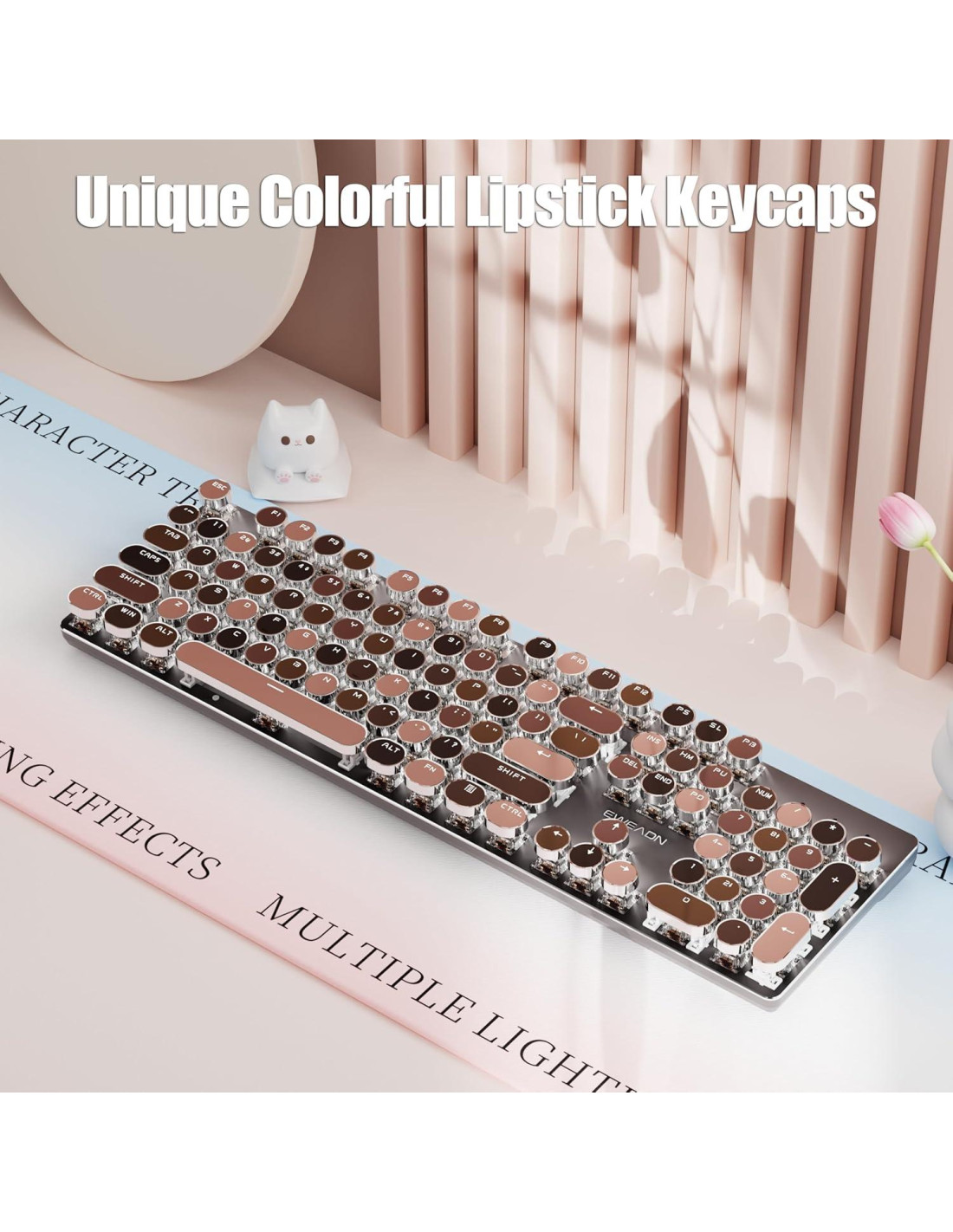 - [Teclas Coloridas Únicas de Labial] - Este teclado kawaii presenta teclas en colores de labial de maquillaje lindos, combinados con anillos de teclas electrochapadas en oro. Diseñado de manera exquisita y estéticamente agradable, sirve como una pieza decorativa para tu escritorio, aportando un ambiente único a tu uso diario y trabajo.