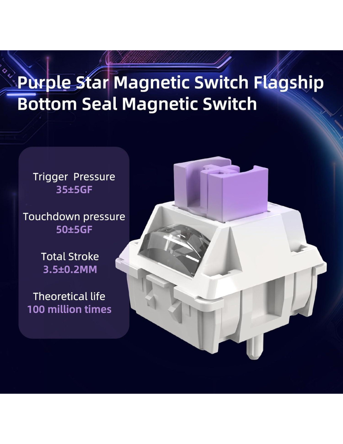 - [Interruptores Magnéticos Avanzados y Función KME] : Utiliza interruptores magnéticos, que aprovechan el Efecto Hall para registrar las pulsaciones de teclas. Puede haber contacto físico entre la tecla y el interruptor, lo que resulta en mayor durabilidad, mayor vida útil, tiempos de respuesta más rápidos y menor desgaste. Mejora tu eficiencia en los juegos, brindando una sensación de juego estable y suave; la función KEM es similar a las funciones SODC y ST, que priorizan la última entrada entre dos teclas seleccionadas sin liberar la tecla anterior.