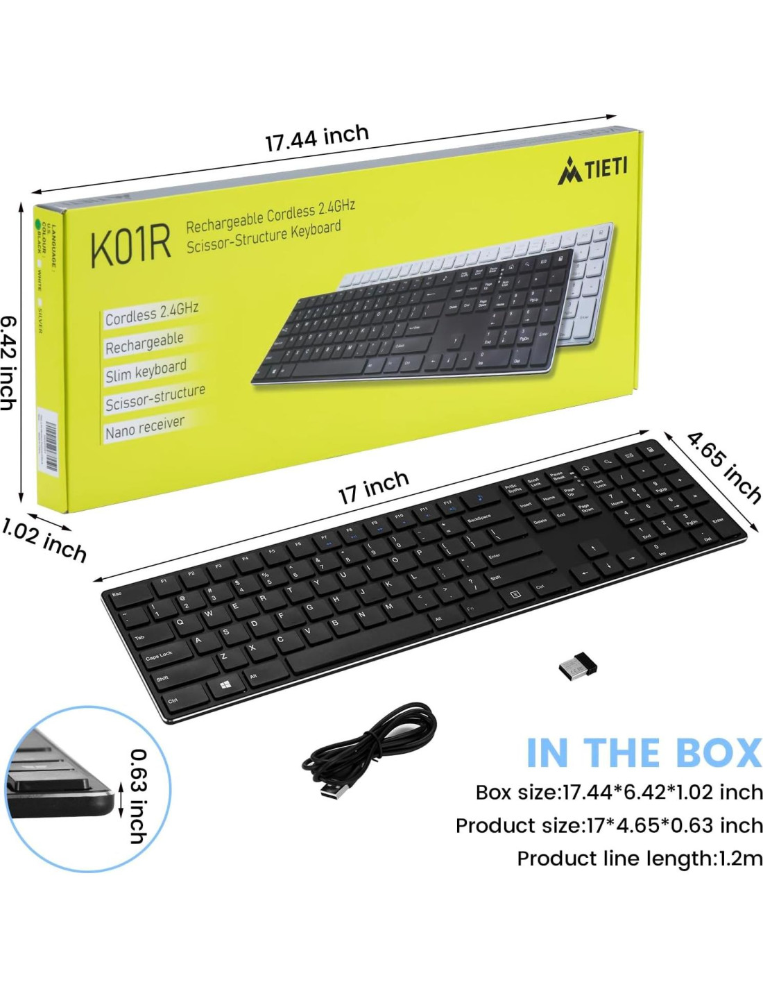 - Recargable y Ahorro de Energía El teclado tiene una batería de iones de litio recargable de 500mAh incorporada que puede usarse continuamente durante 180 días con una sola carga. Si no se usa durante más de 3 minutos, entrará automáticamente en modo de suspensión para ahorrar energía, presionando cualquier tecla para despertarlo.