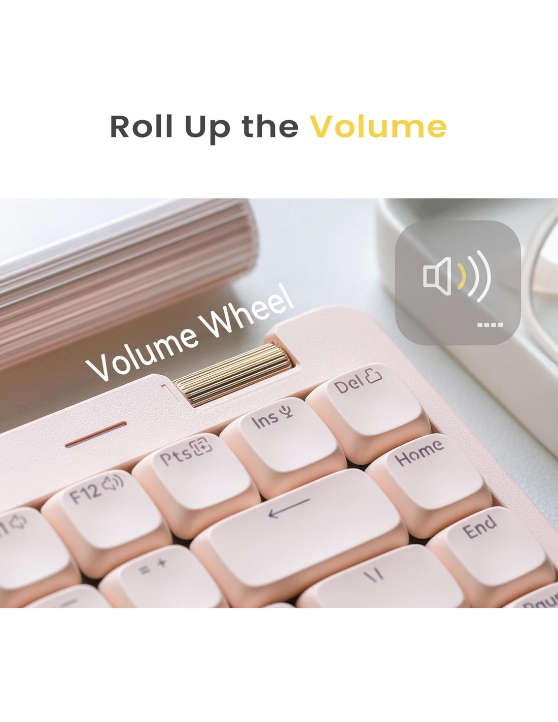 - Soporte Ajustable Incorporado y Rueda de Volumen: Seguimos siendo tu compañero de viaje. El soporte incorporado muestra el compromiso de Lofree con la simplicidad: sin accesorios adicionales de los que preocuparse. Combina practicidad con diversión, la rueda de volumen de aluminio añadida es más simple e intuitiva de usar.