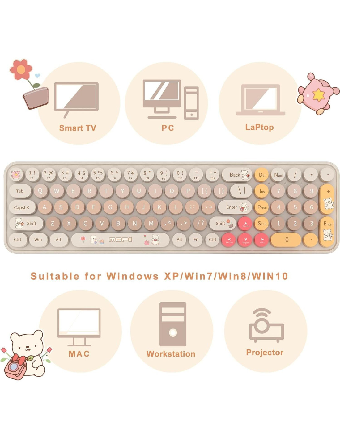 - Teclas Redondas Flotantes Retro Teclado y ratón inalámbricos coloridos con teclas redondas flotantes inspiradas en máquinas de escribir vintage, te brindan la experiencia de escritura más cómoda y añaden un toque de diversión a tu escritorio. El sonido nítido de las teclas te transporta a la era industrial, y las teclas redondas independientes facilitan la colocación de los dedos. Las teclas flotantes bajo tus dedos son cómodas y amigables con la piel.