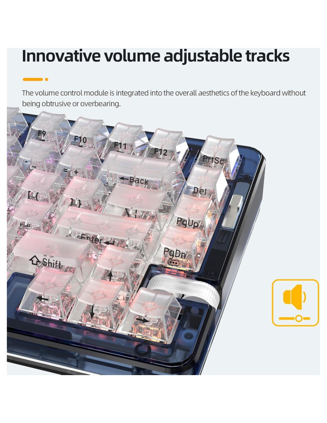 - Pista de Ajuste de Volumen: La pista de ajuste de volumen en el lado del teclado mecánico puede controlar el volumen de la computadora, a la derecha se aumenta, a la izquierda se disminuye.