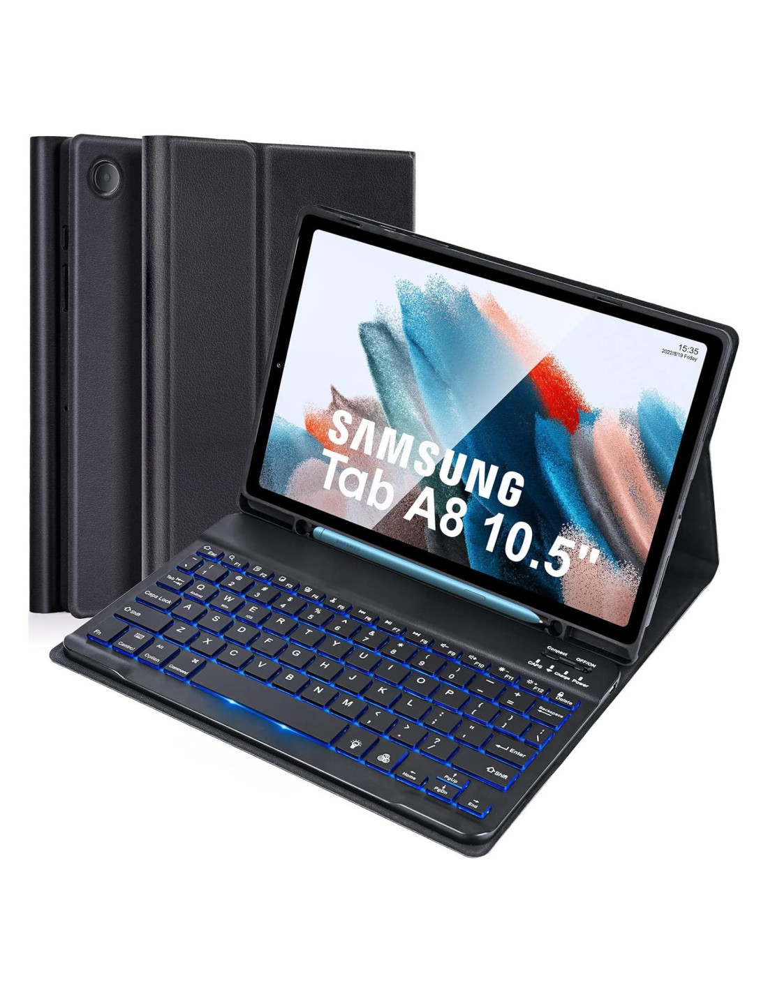- [Funda de Teclado Retroiluminada para Samsung Galaxy A8 Tab]: Esta funda de teclado está diseñada exclusivamente para Samsung Tab A8 10.5 pulgadas 2021 (SM-X200/X205/X207). NOTA: Por favor, verifique el número de modelo de su tableta en la parte posterior de su galaxy tab antes de comprar.