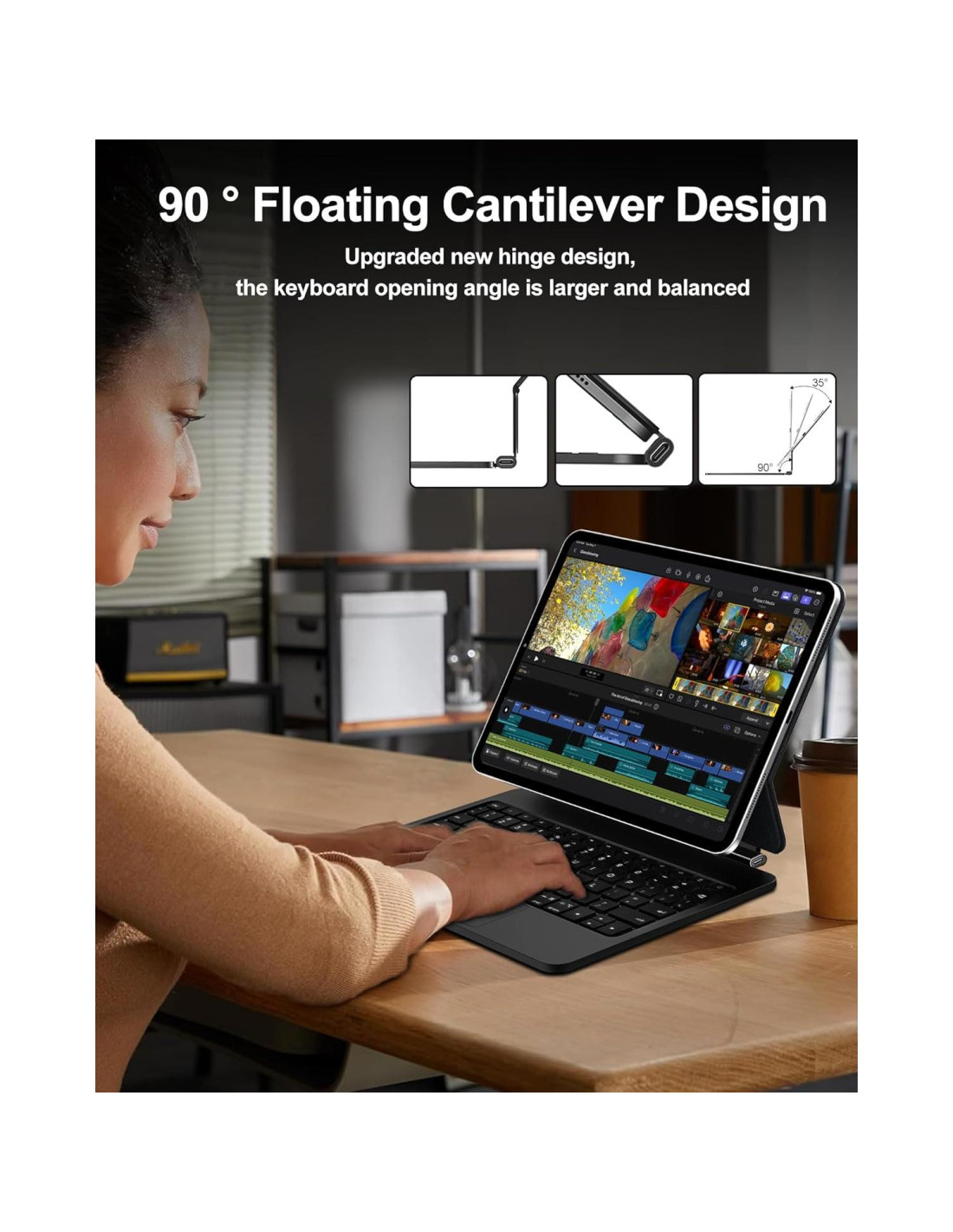 - Diseño de cantilever flotante de 90: Diseño de bisagra mejorado, el ángulo de apertura de la funda para iPad Air M2 de 11 pulgadas es grande y equilibrado. Muchos pequeños imanes están integrados en la cubierta trasera de PU, lo que te permite adjuntar tu tableta magnéticamente y transformarla en una laptop en un segundo. El soporte magnético se puede ajustar suavemente para lograr un ángulo de visión perfecto para escribir, leer y ver.
