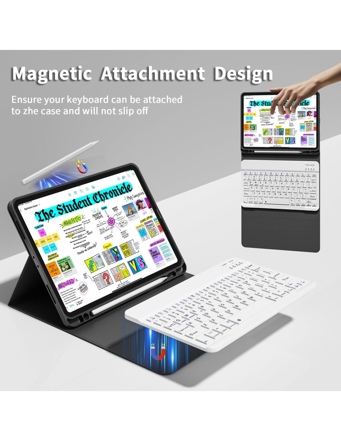 - Múltiples ángulos de visión: La funda de TPU plegable tiene la intención de combinar la tableta y el teclado, formando una laptop con función de teclado para trabajar más fácilmente. La funda de teclado folio inteligente y magnética nos permite ajustar la visión de la pantalla y la posición de escritura. El cierre magnético seguro te permite llevar la tableta, el teclado y una carcasa dura contigo, por lo que es perfecto para trabajar, escribir, tomar notas, escribir y editar o ver videos. Te permite ser eficiente y hacer otras cosas que necesitan hacerse rápidamente.