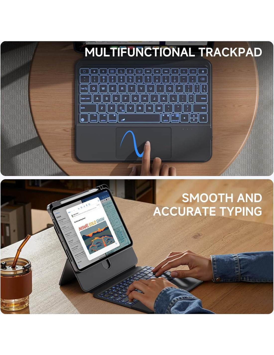 - Teclado Magnético Desmontable: Soporte para gestos de un solo, doble y triple dedo para una interacción intuitiva y fluida. Se acopla/desacopla como un teclado mágico para la funda de iPad Pro de 11 pulgadas. Ideal para usuarios de teclado de iPad con trackpad que necesitan navegación a nivel de escritorio.