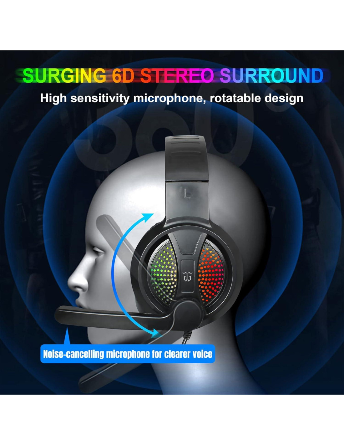 - Auriculares para Juegos Livianos con Micrófono - Haz de RGB, almohadillas de proteína de alta imitación, controlador de 40 mm y micrófono de alta definición que te darán la mejor calidad de sonido, fuerte aislamiento de ruido. El diseño de diadema retráctil con almohadillas para los oídos envueltas en cuero sintético te permite jugar durante horas con total comodidad