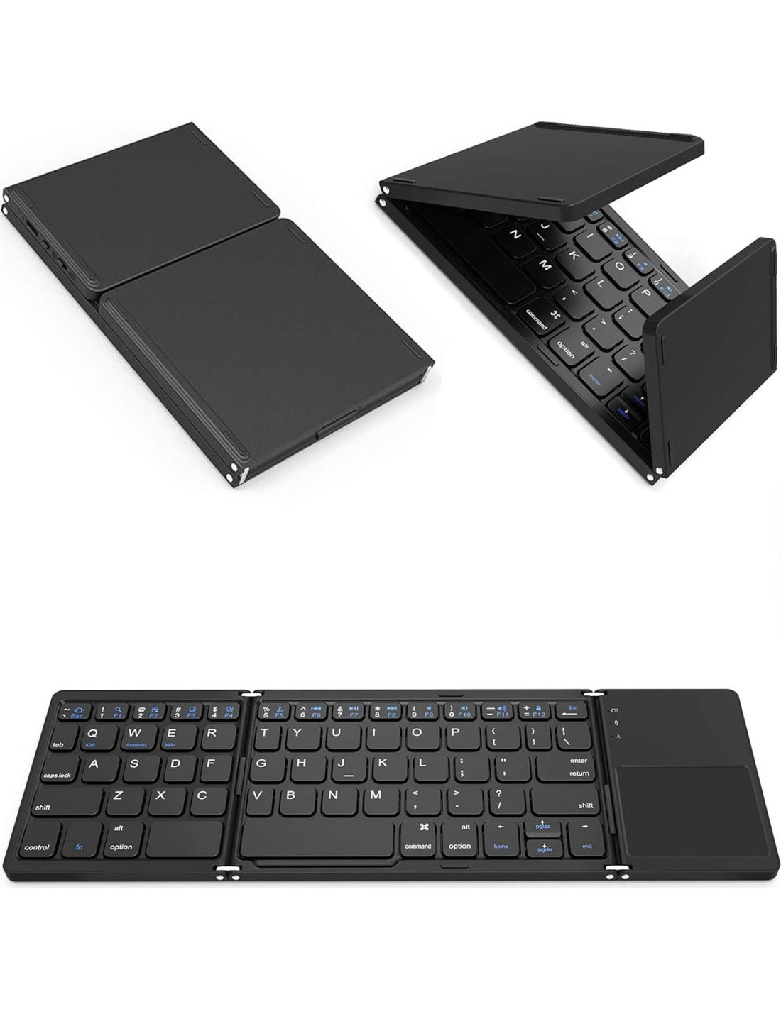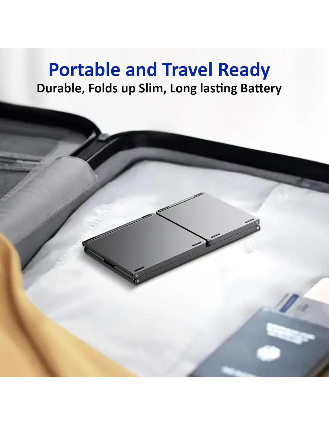- DISEÑO PLEGABLE TRI-FOLD: Nuestro Teclado de Viaje de TAMAÑO COMPLETO es extremadamente delgado y plegable, puede ser un regalo perfecto para cualquiera que viaje a menudo o esté en un viaje de negocios. Te permite operar tus dispositivos móviles sobre la marcha. ¡Escribe rápido, fácil y sin errores! También es una buena opción para editores