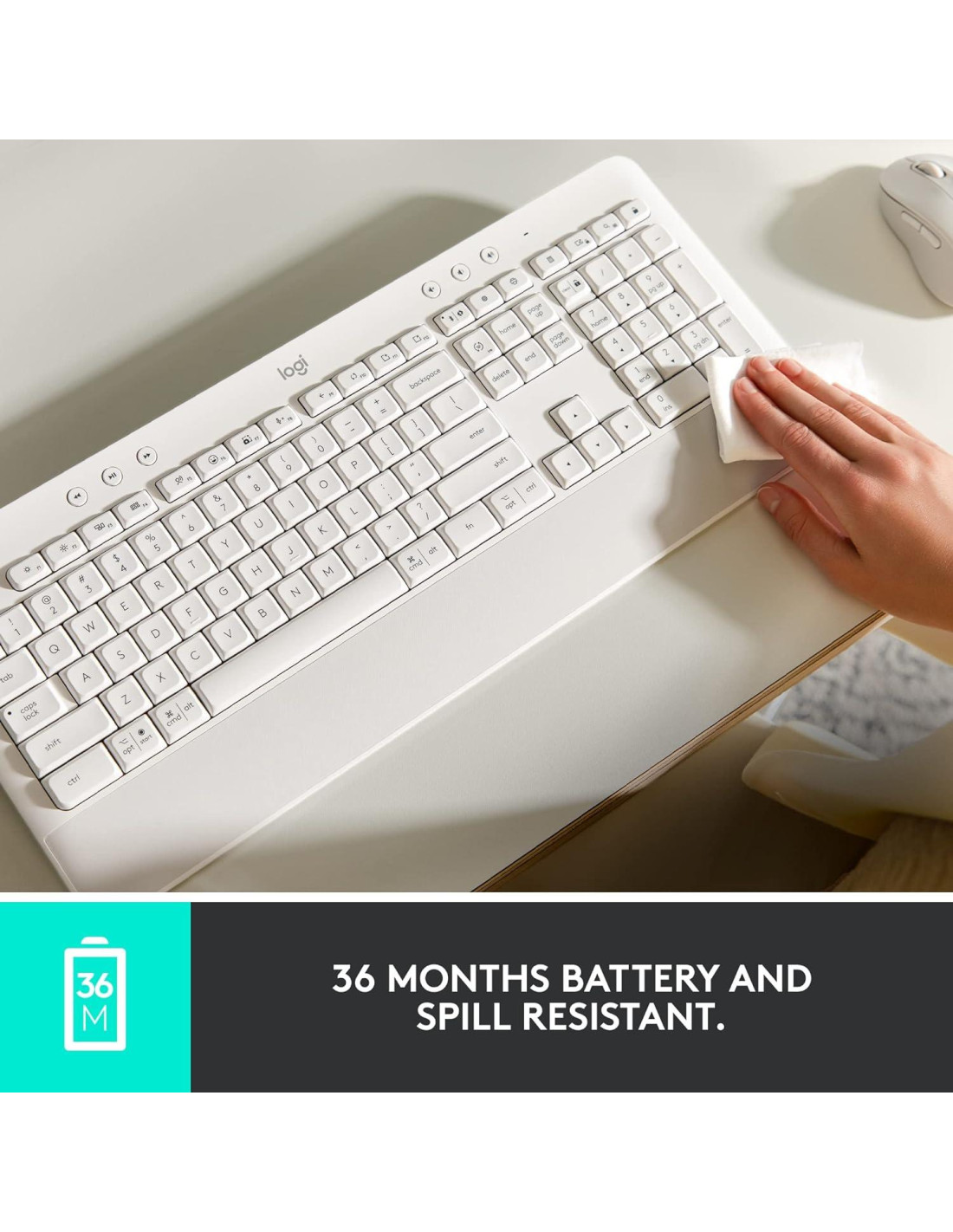 Escribe con comodidad y haz más con el Teclado Inalámbrico de Comodidad Logitech Signature K650. Con un reposamuñecas de tacto suave integrado y teclas con amortiguación profunda, este teclado cómodo te permite escribir con facilidad todo el día. Las patas ajustables ofrecen dos ángulos de inclinación diferentes para que puedas personalizar tu posición de escritura, y el diseño de teclado de tamaño completo proporciona acceso conveniente a todas las teclas correctas. El teclado de acceso directo mejorado de Logitech te ayuda a ahorrar tiempo con 24 comandos diferentes, incluyendo silenciar y activar el micrófono, capturas de pantalla y navegación web. Diseñado para la versatilidad, ofrece dos opciones inalámbricas diferentes para conectarse a tu computadora: Bluetooth o el receptor USB Logi Bolt incluido. Alimentado por 2 baterías AA que durarán hasta 36 meses (1), este teclado inalámbrico también es compatible con múltiples sistemas operativos, incluyendo Windows, Mac y Chrome. Fiable y sin complicaciones, es un teclado de trabajo fácil de limpiar y resistente a derrames. Mejora tu productividad y flexibilidad combinando tu teclado inalámbrico Logitech con el ratón Signature M650 y descargando la aplicación de software Logi Options+ (2) para personalizar tu experiencia. (1) La duración de la batería puede variar según el usuario y las condiciones de computación (2) El software Logi Options+ está disponible solo en Windows 10 y macOS 10.15 o posterior (3) Las funciones básicas del dispositivo serán compatibles sin software para sistemas distintos de Windows y macOS. (4) Excluye plástico en el ensamblaje de circuitos impresos (PWA) y embalaje (5) 2022 Logitech. Logitech, Logi y sus logotipos son marcas comerciales o marcas registradas de Logitech Europe S.A. o sus afiliados en EE. UU. y/o en otros países. (6) El rango inalámbrico puede variar según el usuario, el entorno y las condiciones de computación. (7) La función de dictado requiere que el usuario use el micrófono del dispositivo (Requerido solo para China) (8) Se recomienda Bluetooth para Chrome OS. El uso de Chrome con el receptor USB Logi Bolt enfrentará limitaciones de experiencia.