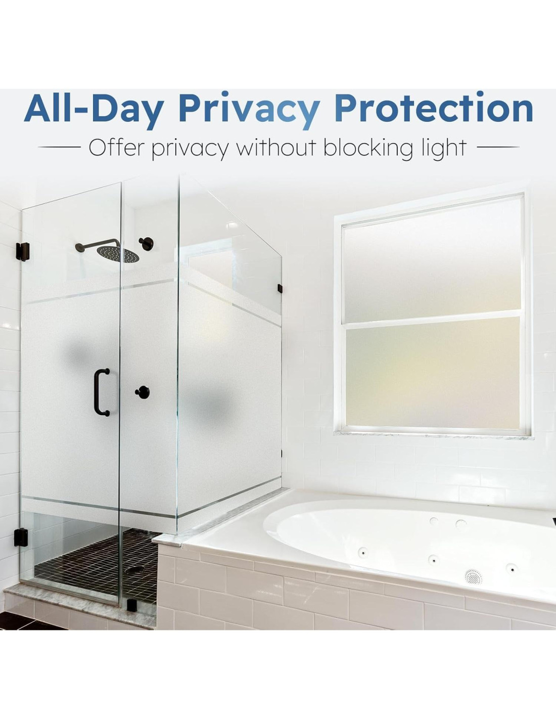 - Versátil para Cada Espacio: Esta película de privacidad es perfecta para baños, duchas, garajes y salas de estar. Su elegante acabado esmerilado mejora la privacidad sin sacrificar el estilo, ofreciendo una alternativa elegante a cortinas o persianas voluminosas