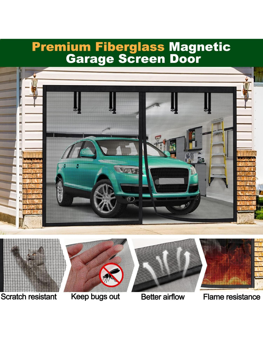 - Pantalla de Garaje de 8 x 7 PIES para Coche Individual: Nuestra red premium está diseñada específicamente para adaptarse a garajes de coches de 8 X 7 PIES. El tamaño de la pantalla de garaje es 8.33*7.15 PIES (2,54 m x 2,16 m), y la longitud extra se incluye intencionalmente para una instalación sin problemas en su puerta. Antes de realizar su pedido, tómese un momento para medir el tamaño de su puerta de garaje.