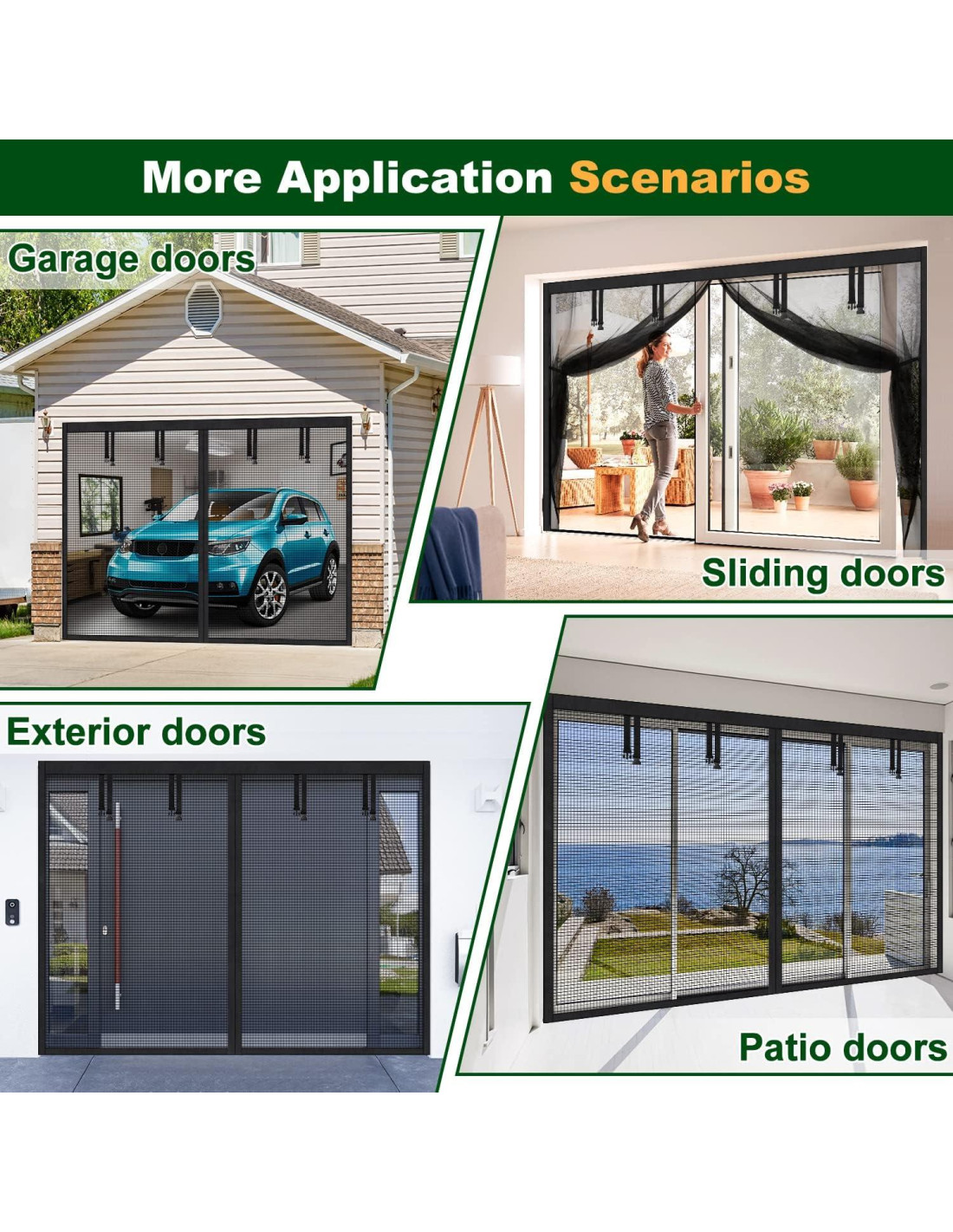 - Fácil de Instalar y Aplicación Versátil: Nuestra pantalla de puerta de garaje viene con una guía de instalación simple. La pantalla de malla para garaje se puede instalar rápidamente utilizando los ganchos, cintas y tiras de bucle proporcionados. Para mayor seguridad y resistencia, puede usar los clavos incluidos para refuerzo. Se puede instalar en varios lugares, como garajes, patios, talleres al aire libre, puertas dobles, puertas de entrada, interiores o exteriores, entradas, porches, balcones y más.