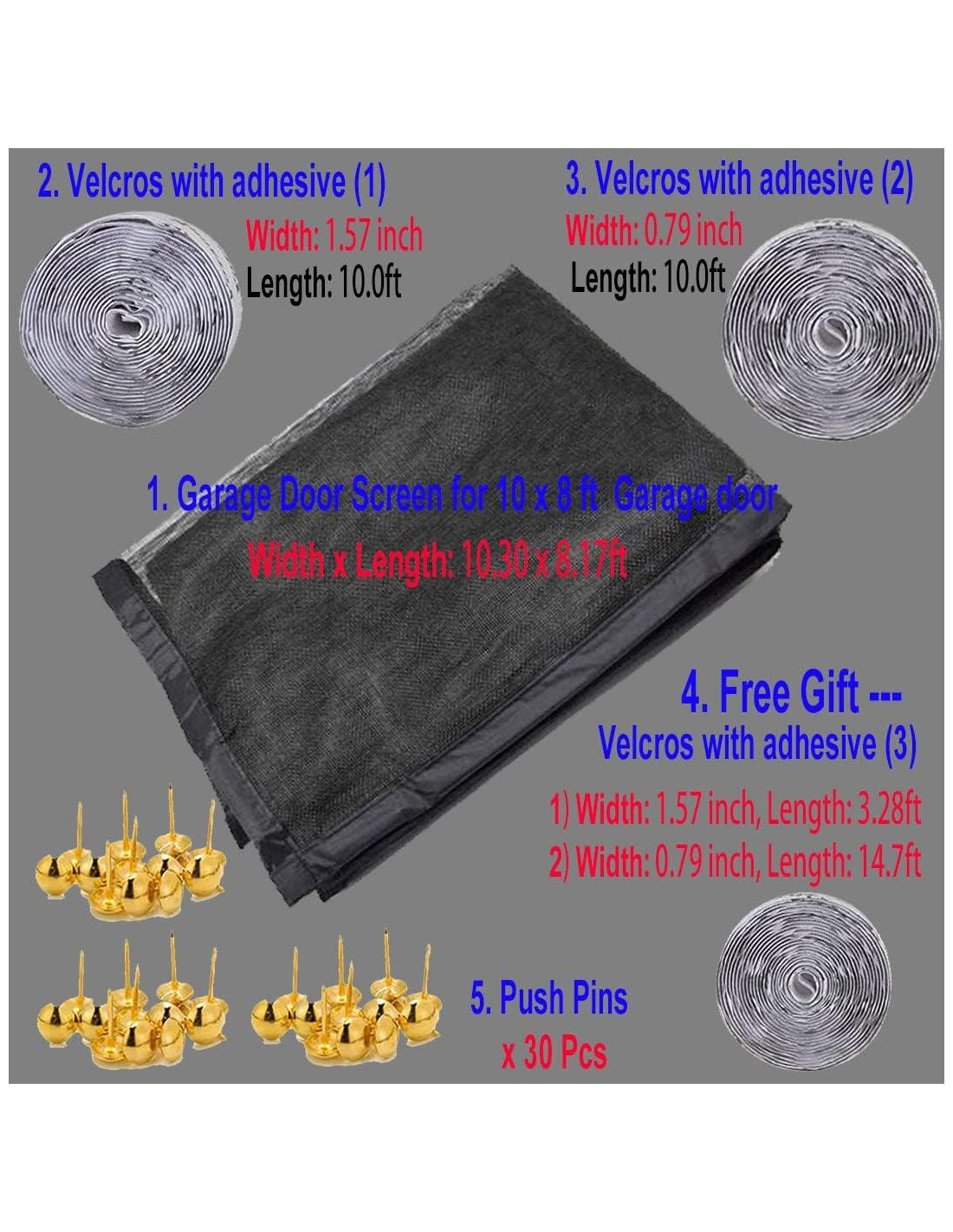 - [FÁCIL Y RÁPIDO DE INSTALAR] - Se instala en pocos minutos con las tiras de gancho y bucle incluidas para terminar la instalación muy fácil, instantánea. Pines de empuje adicionales para mayor seguridad y resistencia. La malla de pantalla de esta pantalla de puerta de garaje de 10.30x8.17ft es retráctil, desmontable, se puede torcer y doblar firmemente con las 9 cintas de almacenamiento incluidas para almacenar temporalmente fuera de temporada.