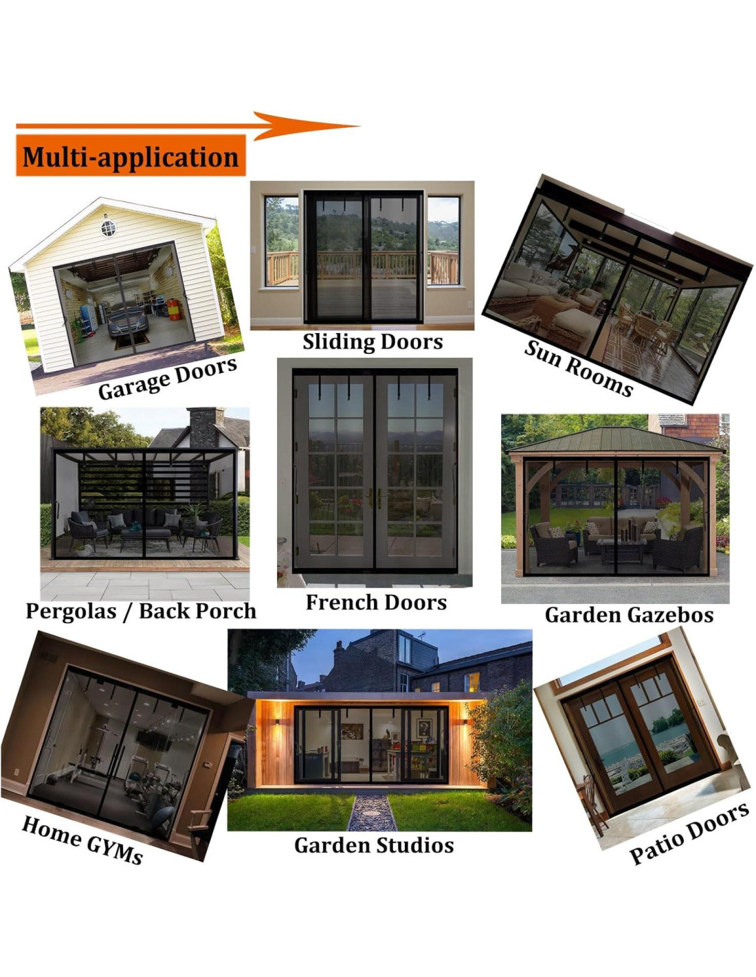 - [Más Escenarios de Aplicación] - Si el tamaño está bien, la puerta de pantalla de garaje (Malla: 10.3x8.17ft) con imán y cinta mágica de marco completo, se puede usar en múltiples lugares, no solo se puede usar para tu garaje, sino que también se puede usar para patio, taller al aire libre, un gimnasio en casa, una sala de manualidades, jardín, ventanas de piso a techo de veranda, sala de juegos de los niños, gazebo de lowes, etc.