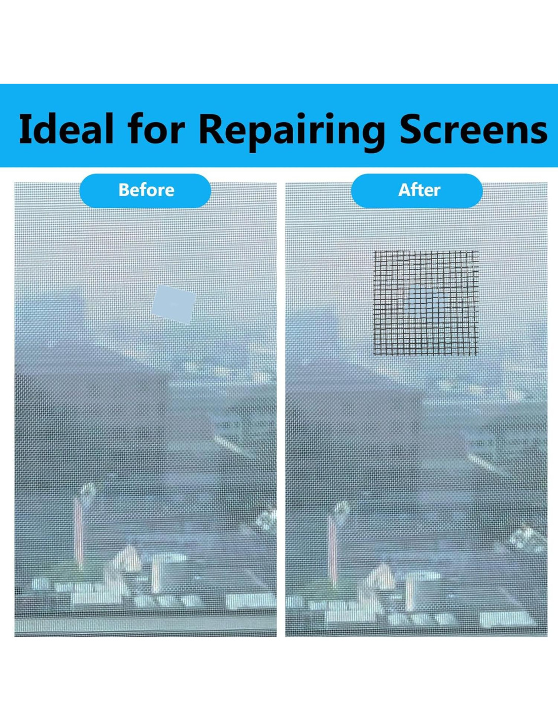 - Amplia Aplicación: El kit de reparación de pantalla de ventana es impermeable, se puede usar tanto en interiores como en exteriores. Se puede usar para arreglar desgarros y agujeros en pantallas de ventanas, puertas de pantalla, tiendas de campaña, pantallas de piscina y otras reparaciones de malla.