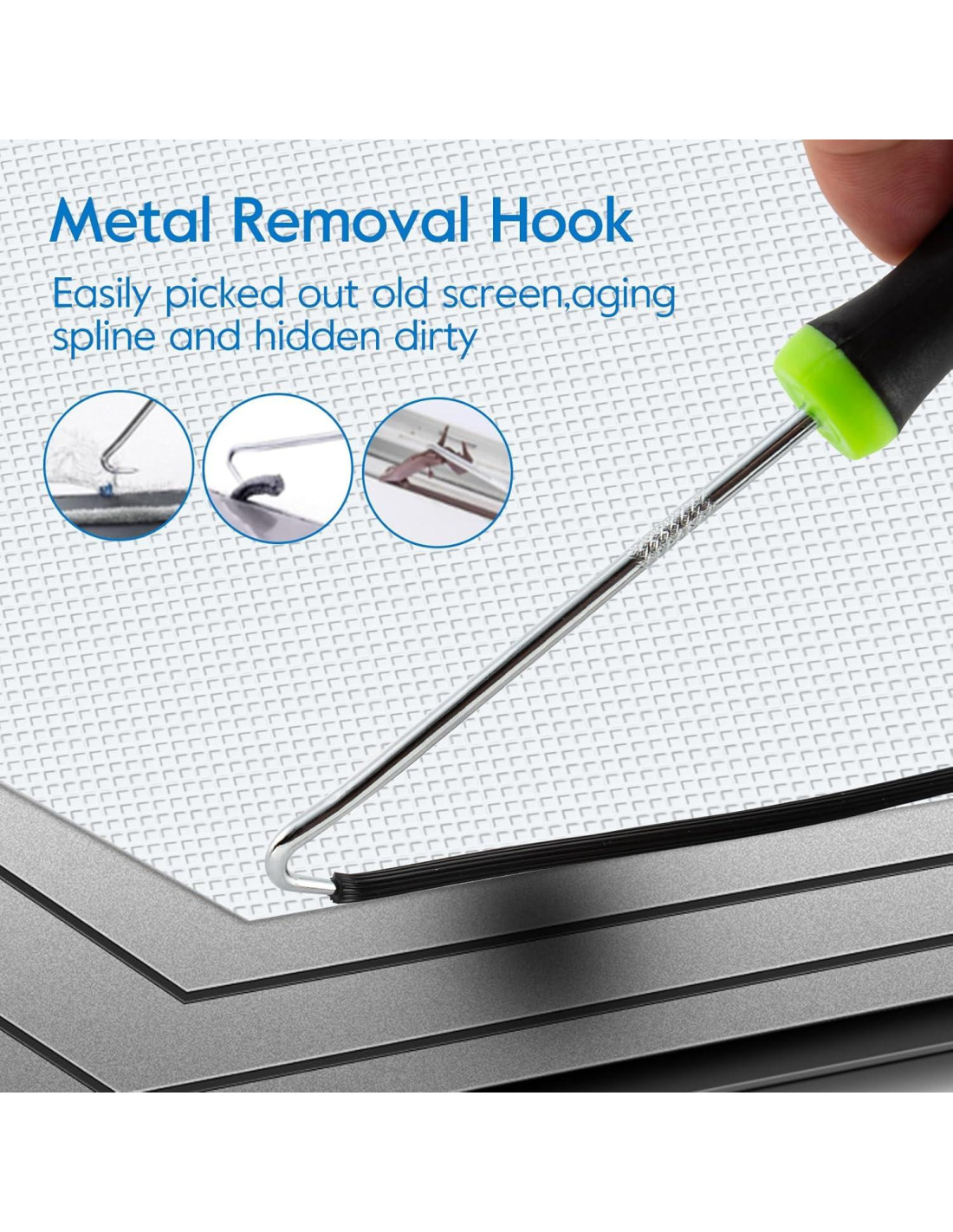 - Kit de Reparación de Pantalla 3 en 1: Las herramientas de rodillo de pantalla incluyen herramienta de rodillo de pantalla, ganchos de eliminación de spline y spline de retención de pantalla de 9.14 metros. Este kit de pantalla es perfecto para reparar y reemplazar pantallas de ventanas y puertas, ahorrando tiempo y esfuerzo de instalación.