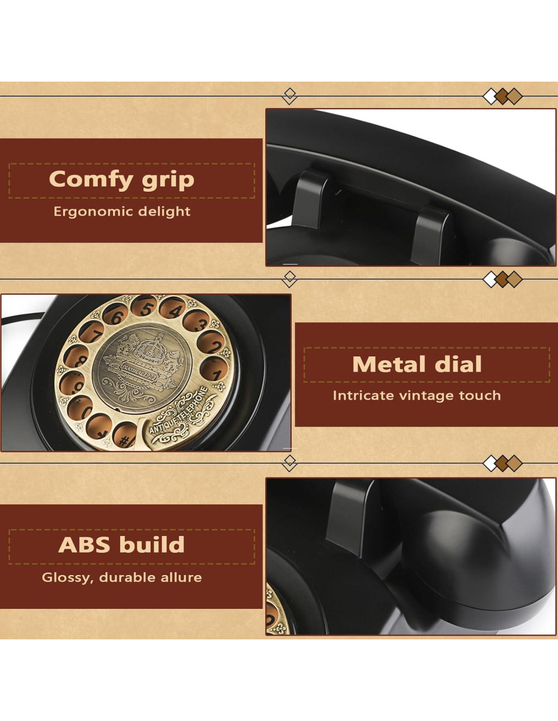 - Materiales ABS: Este teléfono rotatorio está hecho de un material ABS resistente, además el teclado rotatorio con textura metálica te brindará una experiencia única y elegante, también lo suficientemente duradero para durar años