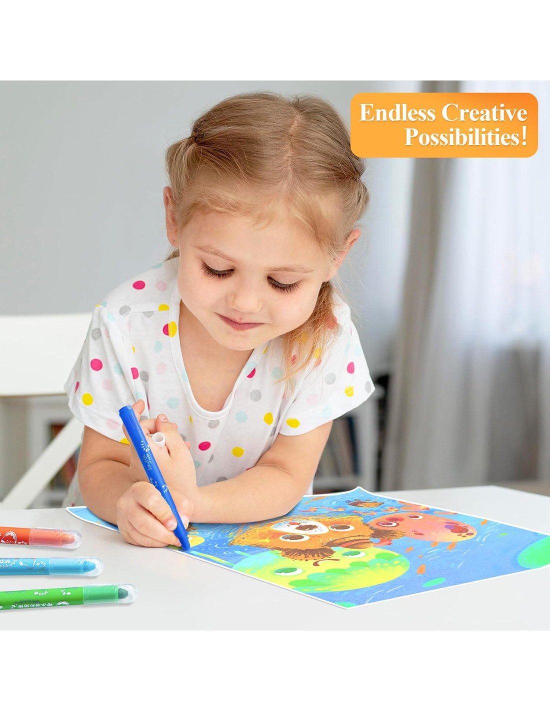 - Fácil de Usar: Los palitos de pintura M&G se deslizan tan suaves como la seda, el pequeño barril redondo es fácil de sostener para los niños. Y el cuerpo giratorio es como el de un lápiz labial y no se romperá fácilmente. No se necesita agua ni pincel, los niños solo necesitan girar los crayones para levantarlos y comenzar a pintar.