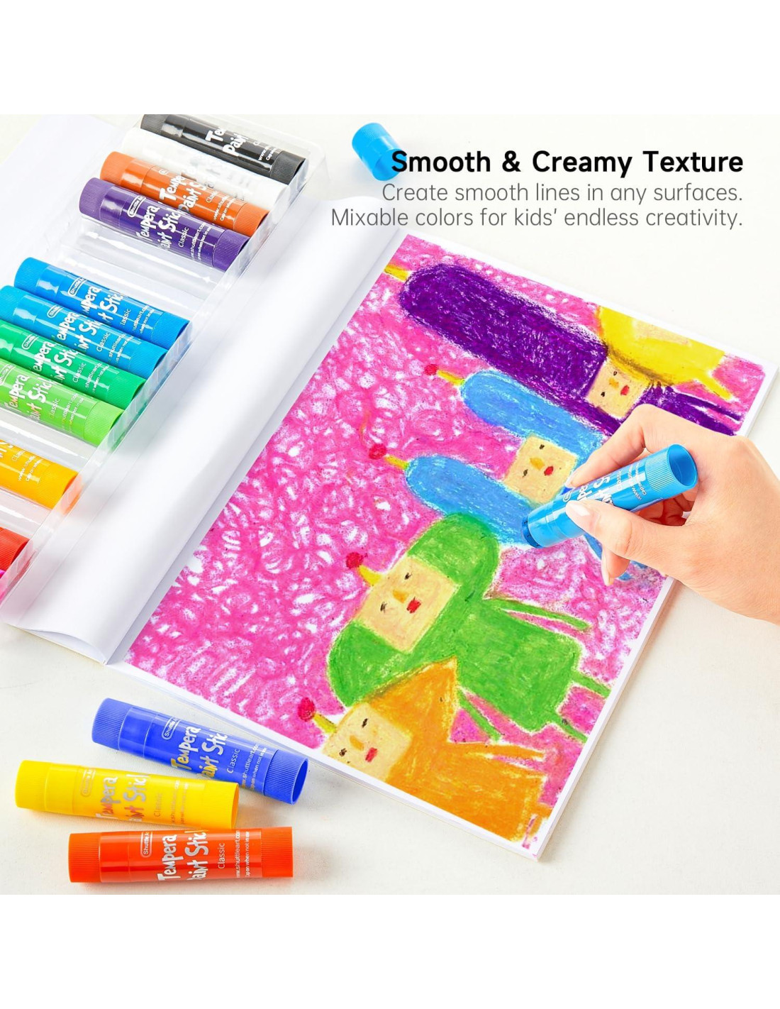 - Libertad Creativa en Cualquier Superficie: Diseñadas pensando en los pequeños artistas, estas barras de pintura tempera vienen con un barril redondo y un diseño giratorio que es fácil de agarrar y usar para manos pequeñas. Funcionan maravillosamente en papel, madera, vidrio, cerámica y lienzo. No se necesitan pinceles ni agua, solo gira y deja fluir la creatividad en cualquier superficie.