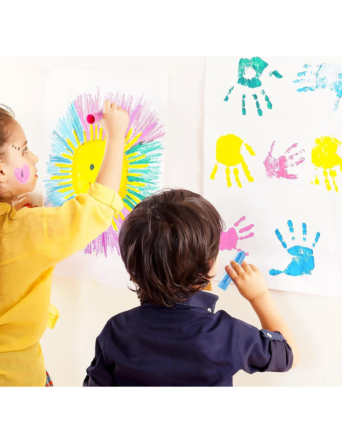 - Limpieza Sin Esfuerzo: ¡Di adiós a las sesiones de arte desordenadas! Estas barras de pintura de secado rápido y sin desorden permiten a los niños disfrutar de la pintura sin complicaciones. Se lavan fácilmente de superficies, ropa y piel, disfrutando más tiempo admirando sus obras maestras y menos tiempo fregando superficies.