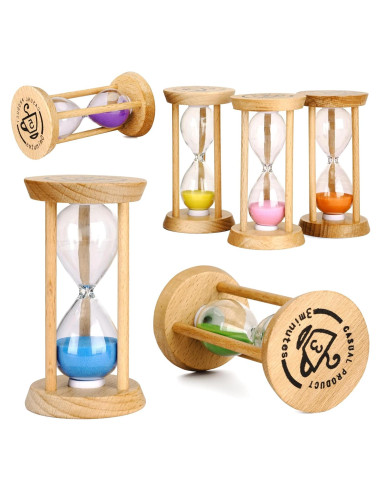 - Cada reloj de arena de madera está marcado con su propio tiempo para un uso fácil. También puedes distinguirlos por sus colores correspondientes.