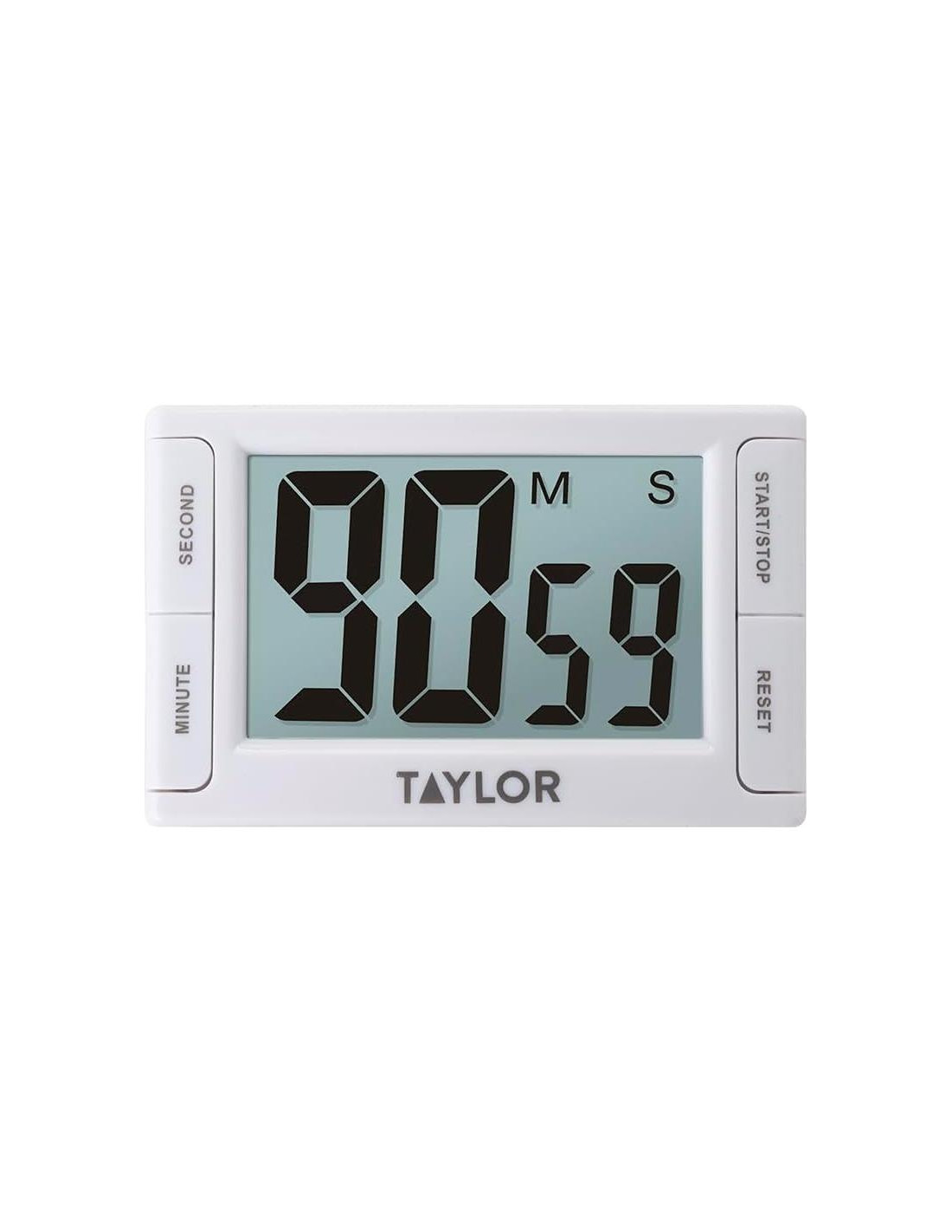 El Temporizador Digital Fácil Taylor es versátil, fácil de usar y proporciona resultados superiores para profesionales y aficionados por igual. Esta unidad versátil combina un reloj digital con un temporizador que está diseñado para una operación fácil con una sola mano. Una pantalla LCD de 1.25 pulgadas (3.18 cm) proporciona una visualización clara y fácil de leer que se puede ver desde el otro lado de la cocina. El temporizador es capaz de mostrar hasta 23 horas, 59 minutos y 59 segundos, adecuado para una amplia variedad de aplicaciones. Las características adicionales incluyen una alarma extra fuerte y una base antideslizante que se agarra a cualquier superficie nivelada. Requiere una (1) batería AAA (incluida).