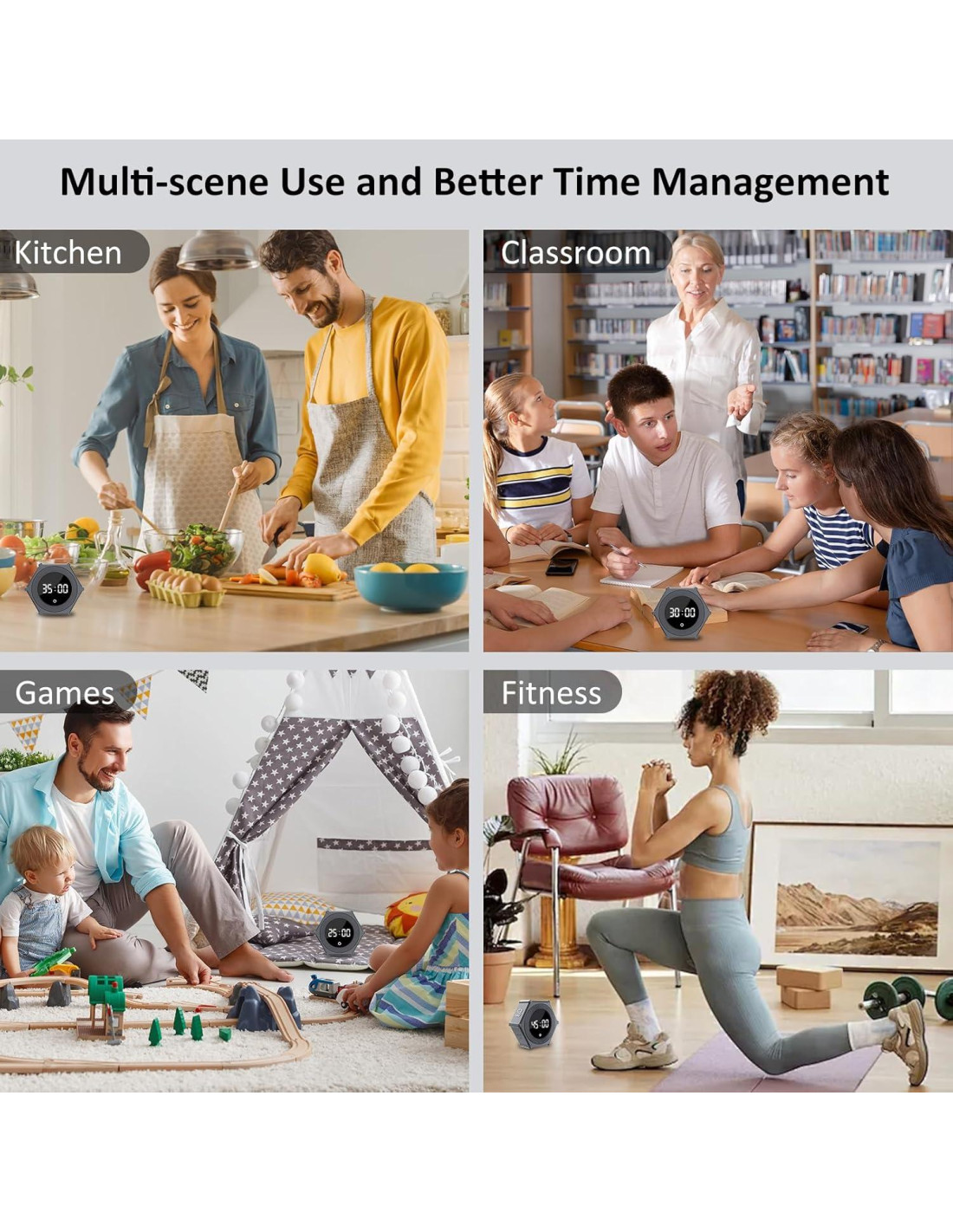 - Temporizador de Enfoque con Detección de Gravedad para Escritorio: Voltea para comenzar tu cuenta regresiva al instante - el número superior establece el tiempo (5/10/15/25/45/60 minutos). Perfecto para sesiones Pomodoro, cocina, entrenamientos y reuniones. La pantalla parpadea y suena una campana cuando el temporizador termina, manteniéndote en el camino sin esfuerzo.