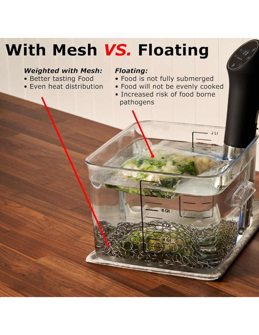 - GARANTÍA DE SATISFACCIÓN - Accesorio sous vide seguro y fácil de usar diseñado para satisfacer tus necesidades culinarias. Si no estás completamente satisfecho con nuestra pesa sous vide, una adición perfecta a cualquier kit de accesorios sous vide, contáctanos de inmediato para una resolución. Tu satisfacción en la cocina es nuestra prioridad, y con nuestro hundidor sous vide premium, puedes esperar resultados consistentemente excelentes en cada plato.