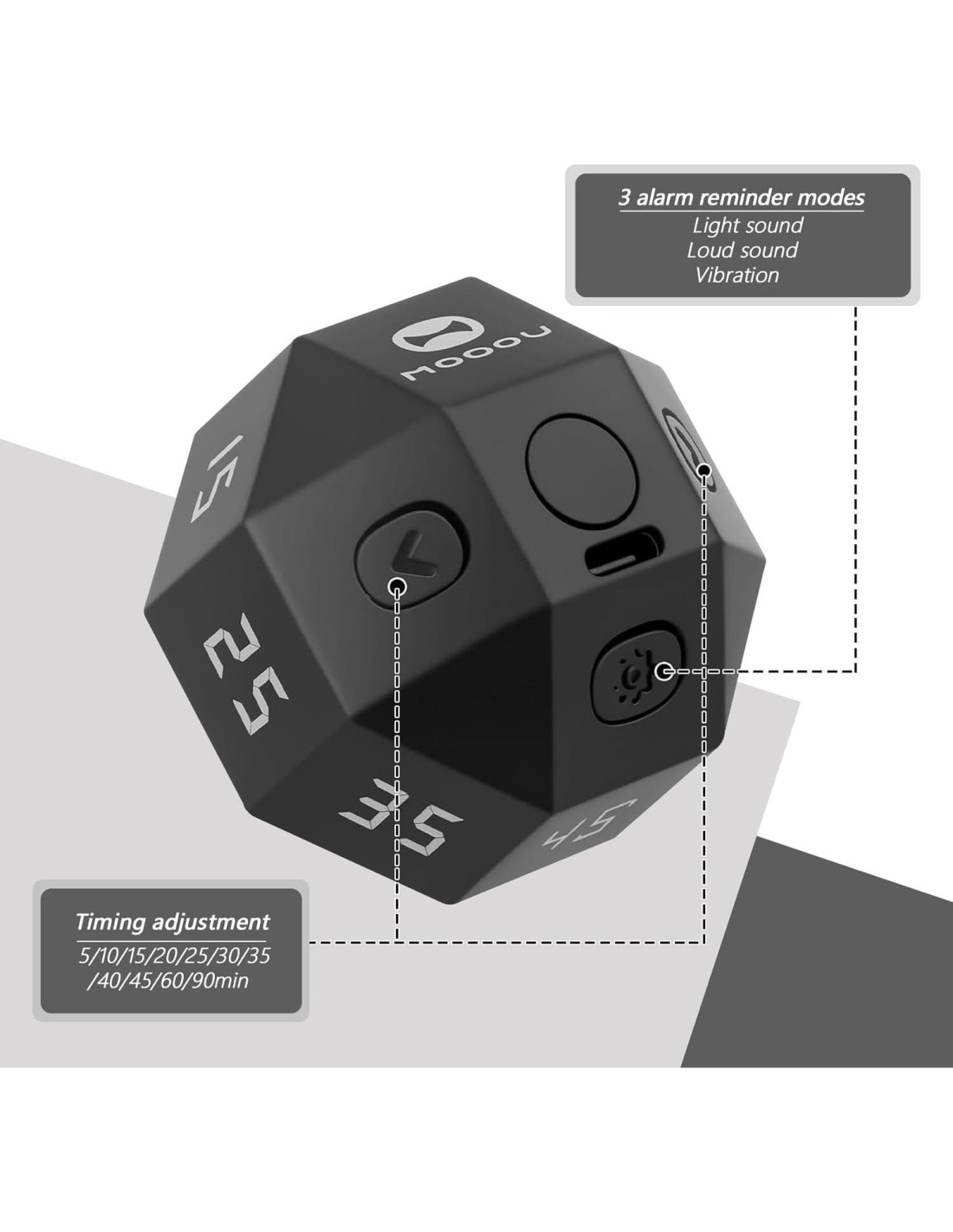 - Varios tiempos preestablecidos: El temporizador de 12 caras cuenta con 11 duraciones de cuenta regresiva preestablecidas (en minutos: 5, 10, 15, 20, 25, 30, 35, 40, 45, 60, 90). Con un simple giro, el temporizador comienza en solo un segundo. La pantalla LCD compacta asegura una visualización digital clara y fácil de leer. Equipado con un sensor de gravedad incorporado, admite tanto modos de conteo ascendente como descendente: gira en sentido horario para contar hacia arriba y en sentido antihorario para contar hacia abajo.