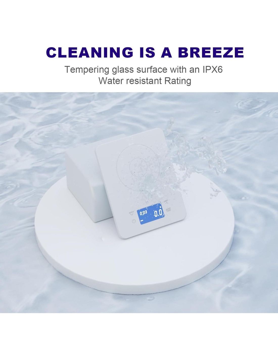 - Vidrio Templado Impermeable: La superficie de esta balanza de café está hecha de vidrio templado impermeable, que es duradero, fácil de limpiar y resistente a manchas y rasguños. No tienes que preocuparte por derramar agua o café sobre ella.