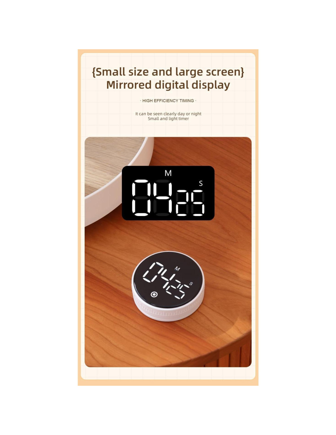 - [Niveles de Sonido de Alarma Ajustables] : El inconfundible y ajustable beep te alerta cuando tu reloj de cuenta regresiva llega a cero. Este temporizador ajustable cuenta con dos niveles de sonido de alarma (Silencio, Alto).