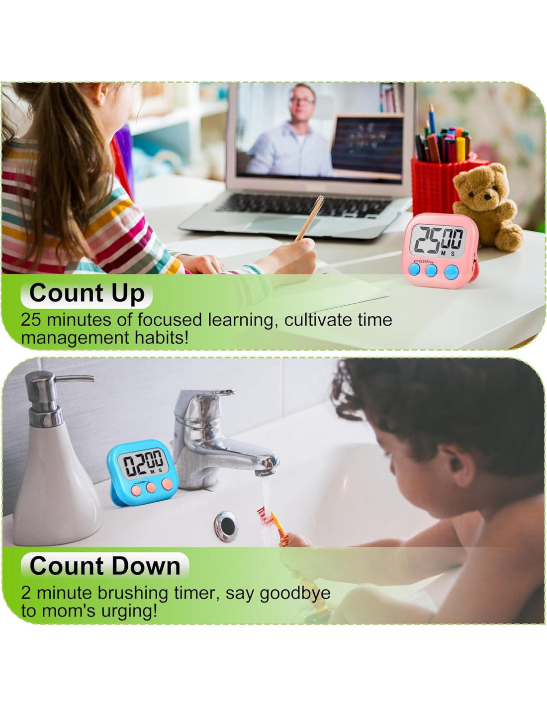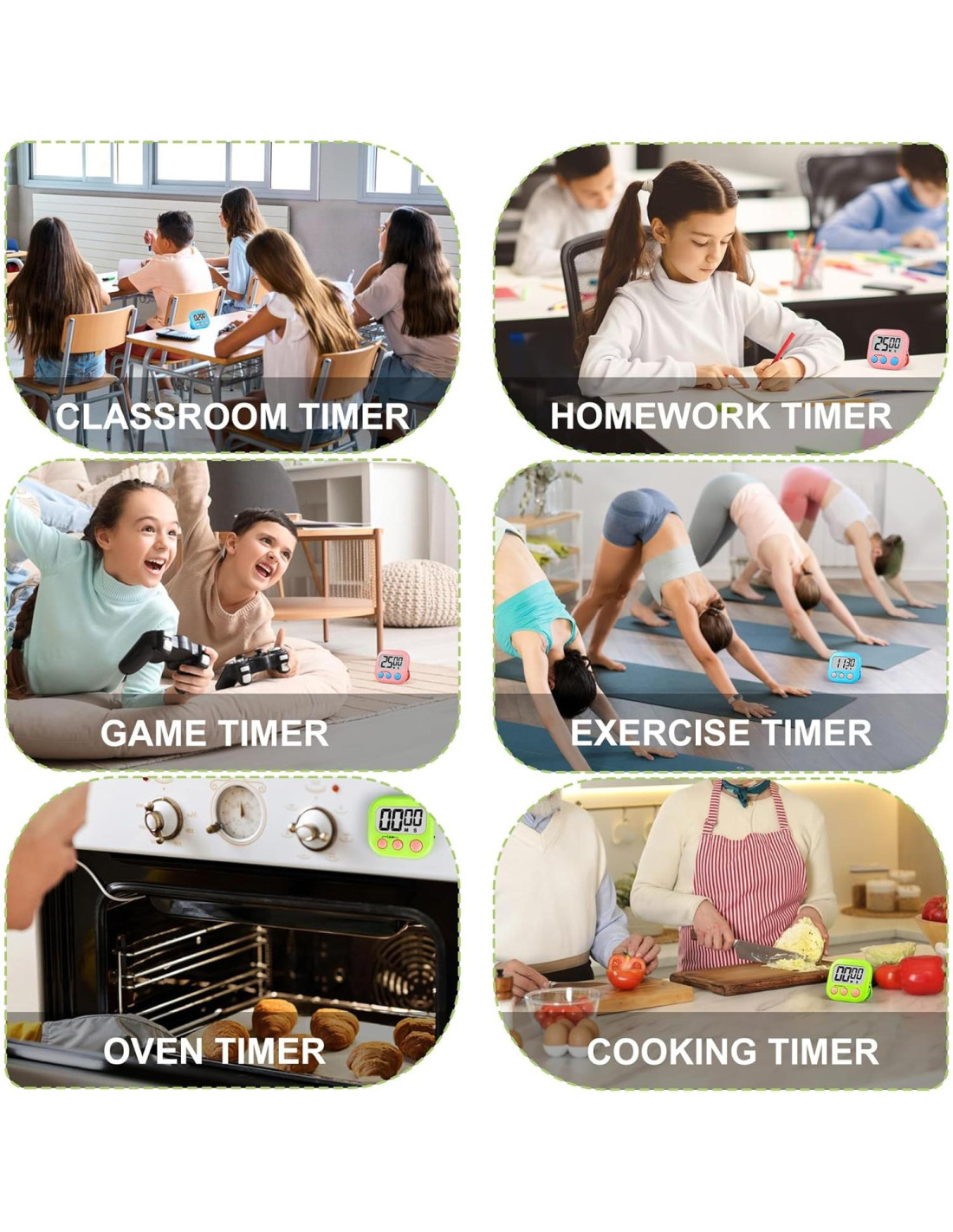- DISEÑO DE COLOR VIBRANTE: Múltiples combinaciones de colores para combinar con diferentes estilos de escenas de vida, adecuado para aula, cocina, deportes, belleza, reuniones, recordatorio de medicación, tiempo de descanso, herramientas de baño, clínica de mascotas, etc.