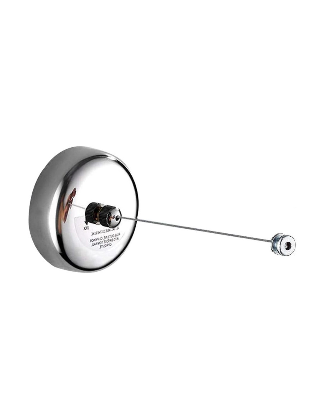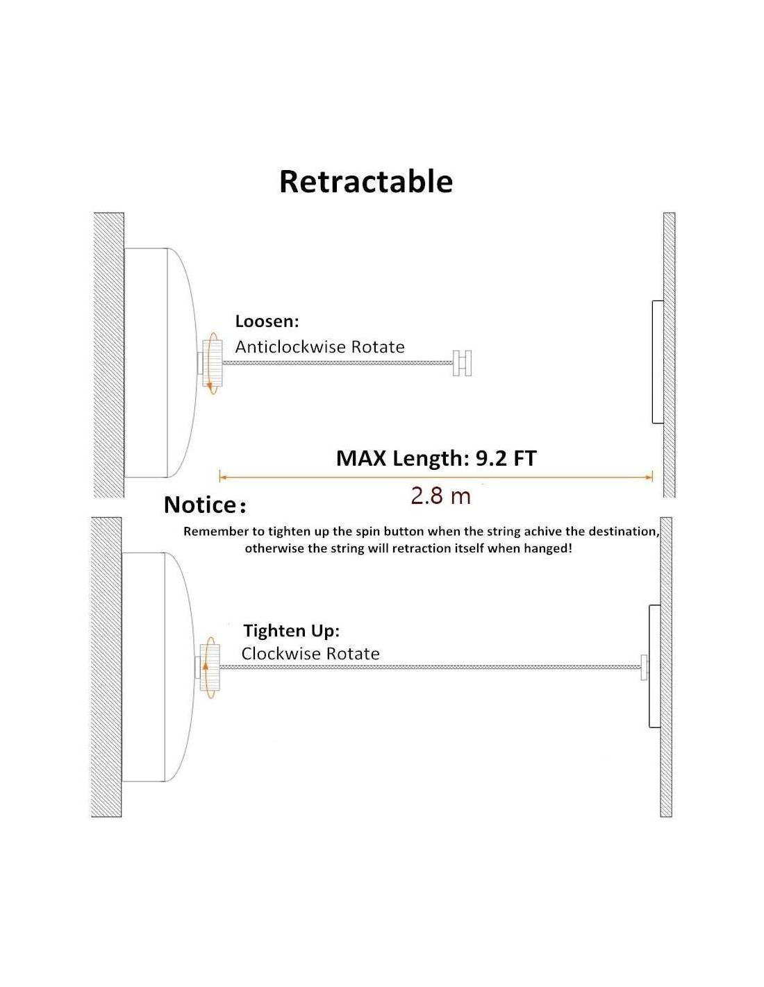 - Retráctil: La línea de acero inoxidable ajustable se extiende hasta 2.8 Metros (9.2 Pies). Cualquier longitud inferior a 2.8 metros está disponible con botón de bloqueo.