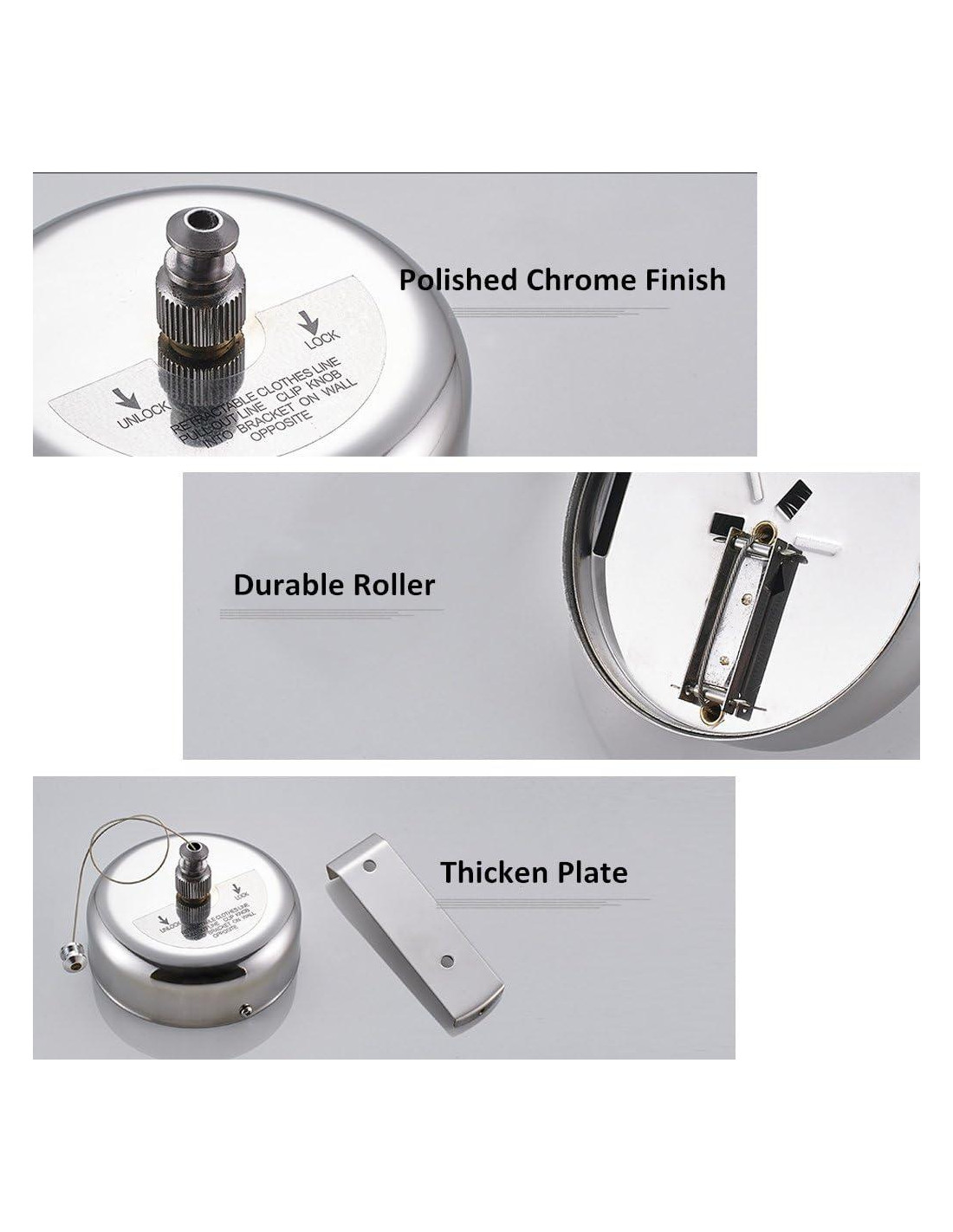 - Ahorra Espacio: Muy fácil de retraer si es necesario mover la línea de vuelta a su estuche para un fácil almacenamiento.