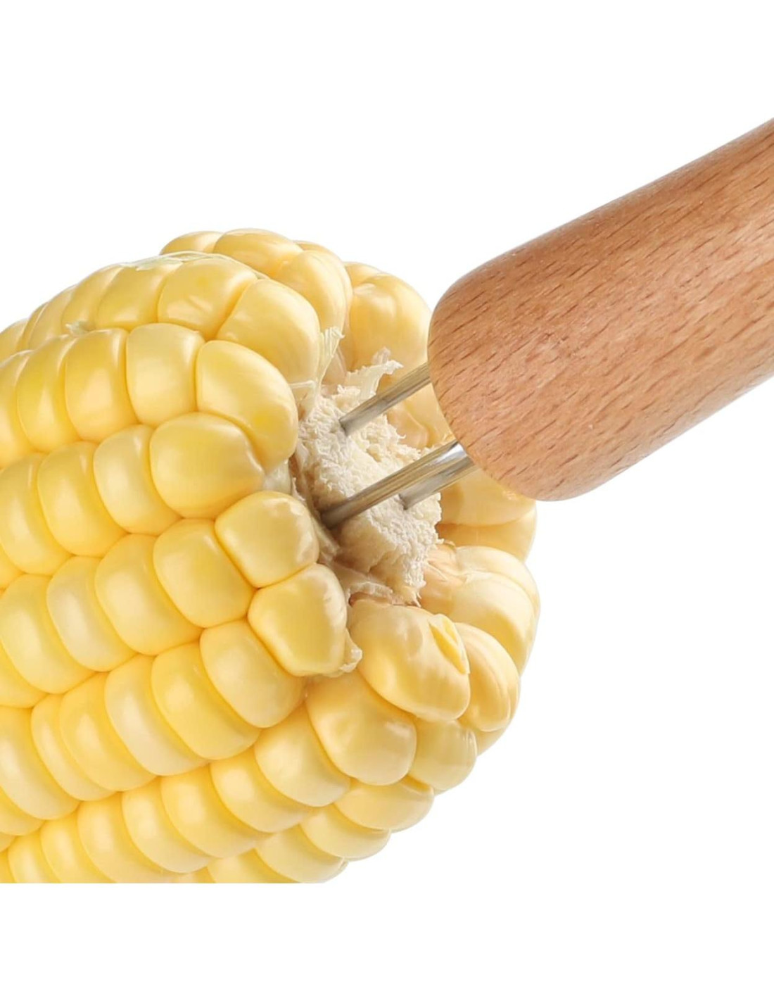 - [Material Premium] Nuestros sujetadores de maíz son hermosos en apariencia con mango de madera, fáciles de agarrar; las tres agujas están hechas de acero inoxidable premium, duraderas y convenientes de limpiar, pueden usarse por mucho tiempo.