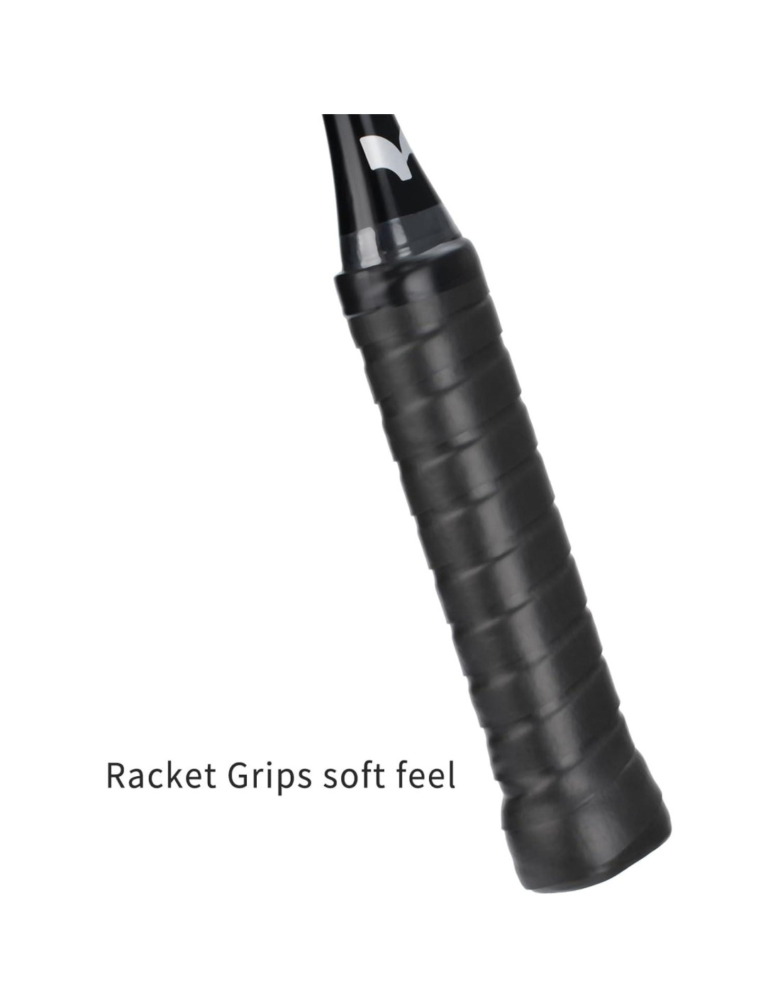 - 3. Ligereza: Las raquetas de squash de grafeno son típicamente más ligeras y tienen una distribución de peso más equilibrada en comparación con materiales tradicionales. Esto proporciona un agarre y un movimiento más cómodos, reduciendo la carga en tus brazos y hombros y permitiéndote jugar durante períodos más largos sin fatiga.