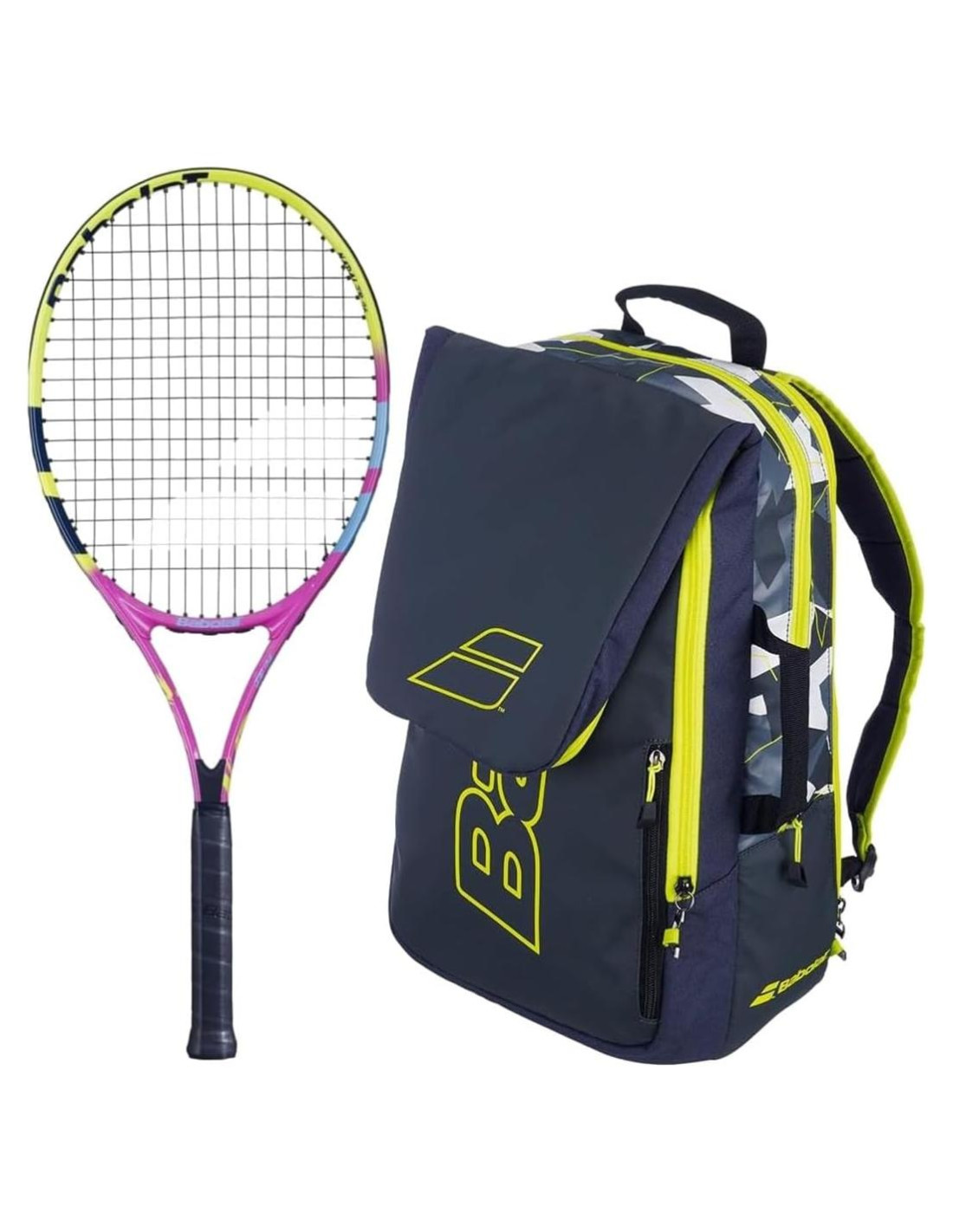 - INCLUIDO EN ESTE PAQUETE: Este kit de inicio de tenis incluye (1) Raqueta de Tenis Babolat Nadal Jr (Rafa 2da Gen) en tu elección de longitud de marco y (1) Mochila de Tenis Babolat en tu elección de estilo. Agrega pelotas de tenis y empuñaduras opcionales para personalizar tu set.