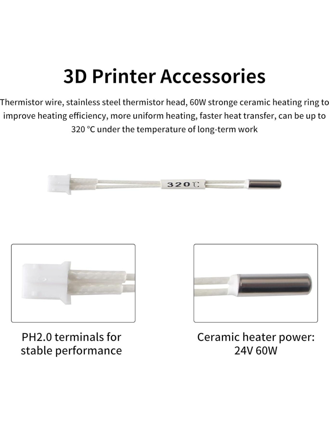 - Termistor de 100 KOhm, el tubo de calefacción es de aproximadamente 3mm*L10mm (0.1*0.3 pulgadas)