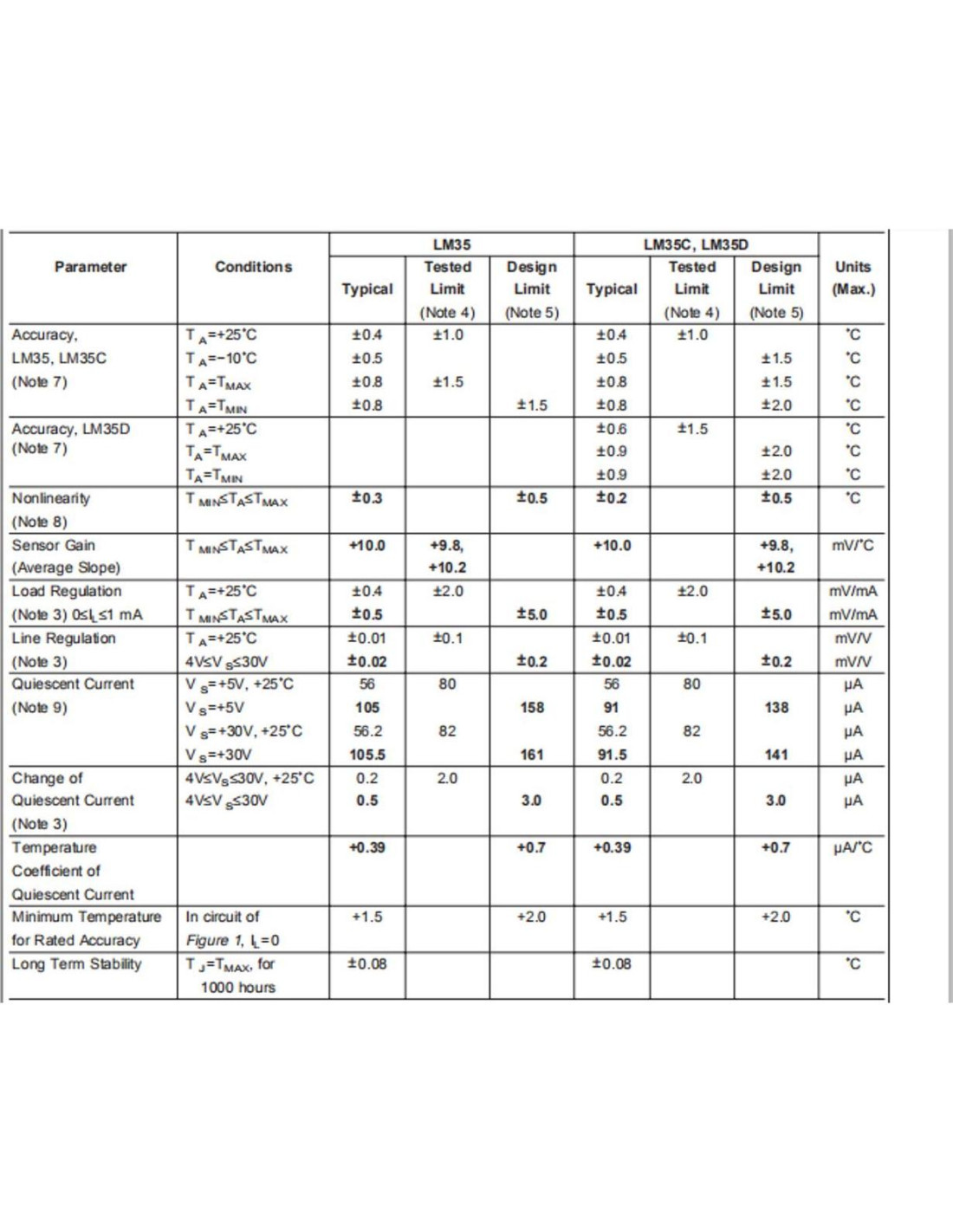 La serie LM35 son sensores de temperatura de circuito integrado de precisión, con un voltaje de salida linealmente proporcional a la temperatura en centígrados. Así, el LM35 tiene una ventaja sobre los sensores de temperatura lineales calibrados en Kelvin, ya que el usuario no necesita restar un gran voltaje constante de la salida para obtener una escala conveniente en centígrados. El LM35 no requiere ninguna calibración o ajuste externo para proporcionar precisiones típicas de +/-0.25C a temperatura ambiente y +/-0.75C en un rango de temperatura de -55C a +150C. La baja impedancia de salida, la salida lineal y la calibración inherente precisa del LM35 facilitan especialmente la conexión a circuitos de lectura o control. El dispositivo se utiliza con fuentes de alimentación simples, o con fuentes de alimentación positiva y negativa. Como el LM35 solo consume 60 A de la fuente, tiene un auto-calentamiento muy bajo de menos de 0.1C en aire quieto. Tipo de Salida IC: Voltaje Rango de Precisión de Detección: +/-0.4C Temperatura de Detección Mínima: +2C Temperatura de Detección Máxima: +100C Dimensiones: 5.21 x 4.19 x 5.34 mm Ganancia del Sensor: 10 mV/C Voltaje de Suministro Mínimo: 4 V Voltaje Máximo de Suministro Operativo: 30 V El paquete incluye 5pcs*LM35DZ