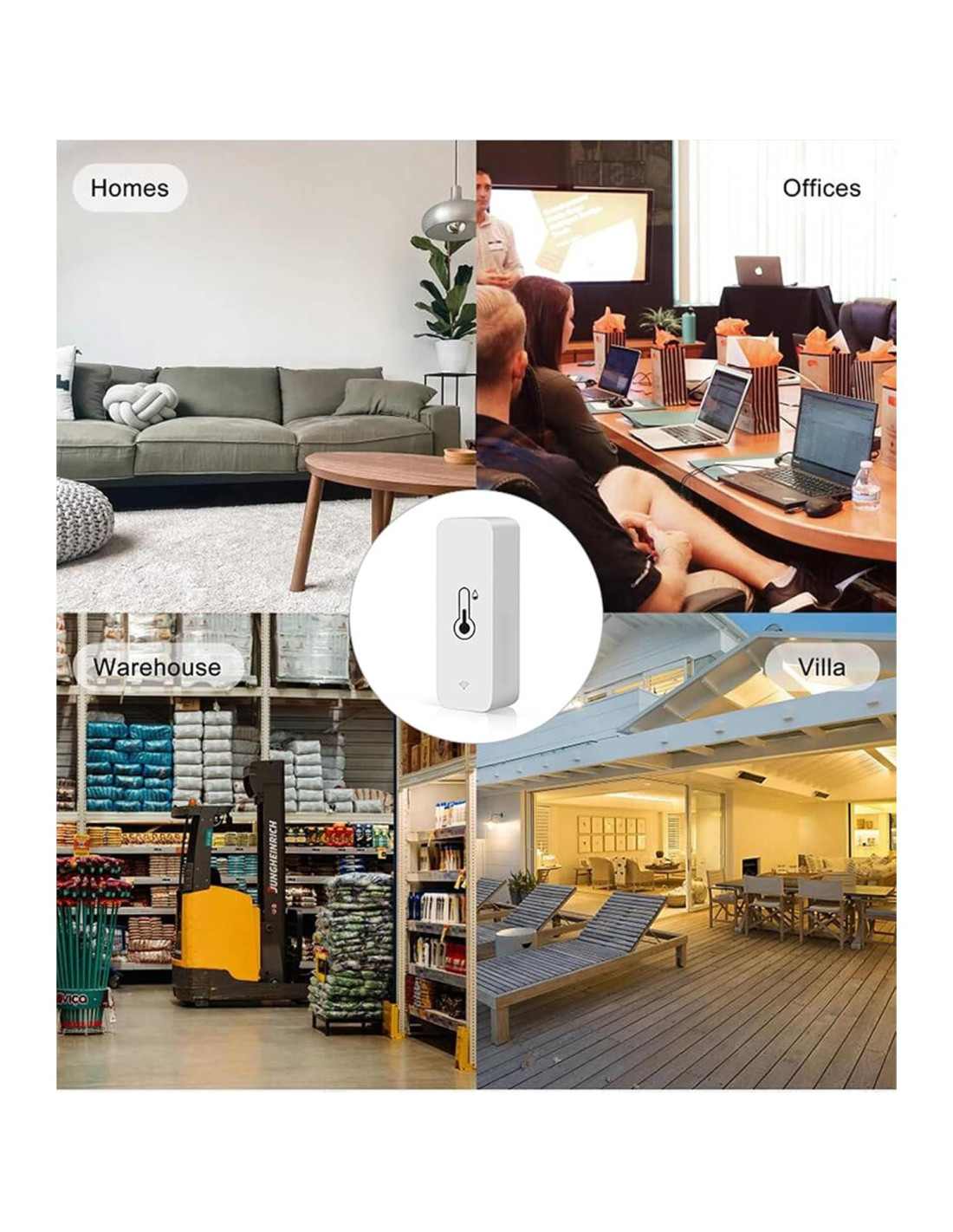 - CONTROL POR VOZ: Sensor de Temperatura y Humedad Wifi compatible con Amazon Alexa, Google Home. Después de conectar Alexa y Google, puedes conocer la temperatura y humedad actuales por voz. Por ejemplo, puedes decir "Alexa, ¿cuál es la temperatura en la sala de estar?"