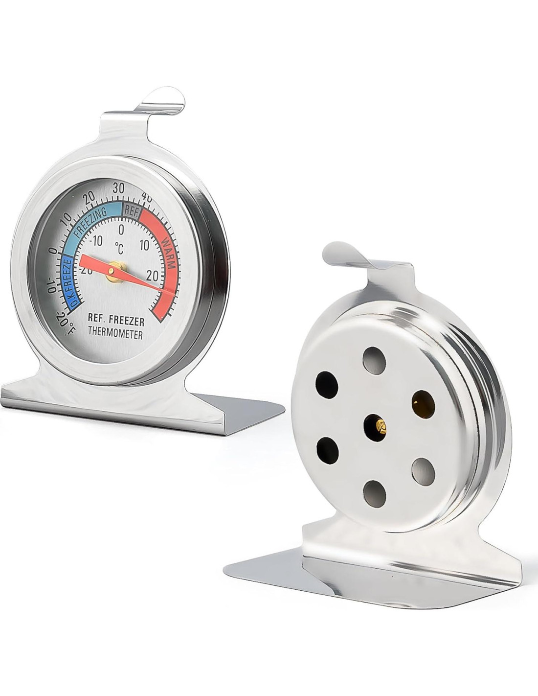 - Material Premium: El termómetro de refrigerador está hecho de acero inoxidable, duradero, impermeable y resistente a la corrosión, larga vida útil y fácil de limpiar, ideal para su uso en refrigeradores y congeladores.