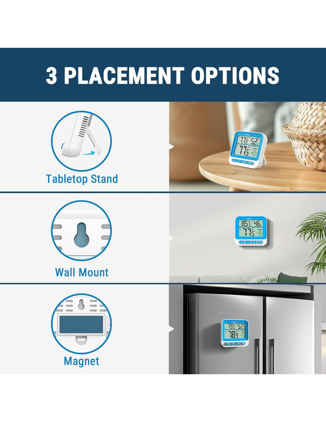 - Pantalla Grande Retroiluminada: El termómetro de piscina inalámbrico con monitor de temperatura y humedad cuenta con dígitos grandes y retroiluminación para asegurar una lectura fácil incluso en condiciones de poca luz; Registro de máximos y mínimos durante todo el tiempo/24 horas ayuda a rastrear temperaturas a lo largo del día.