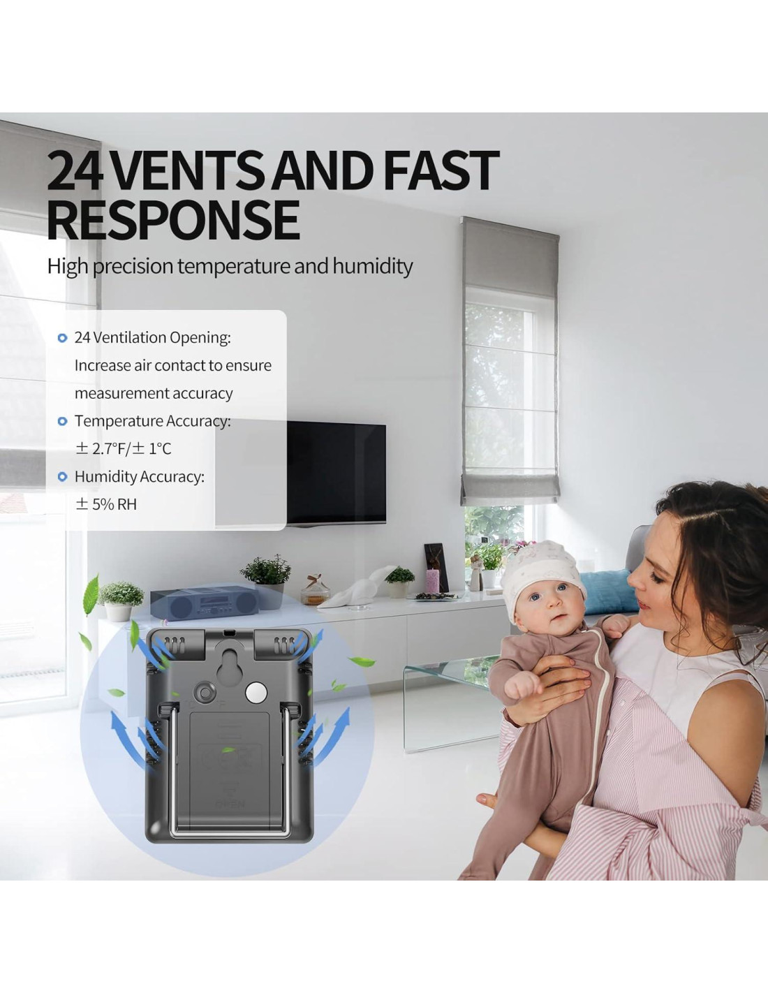 - [Alta Precisión y Rápida Actualización] El termómetro de habitación tiene una alta precisión de +/-3%~5% RH y +/-1F. Disfruta de datos precisos del termómetro interior cada 5 segundos, lo que es ideal para medir entornos dinámicos