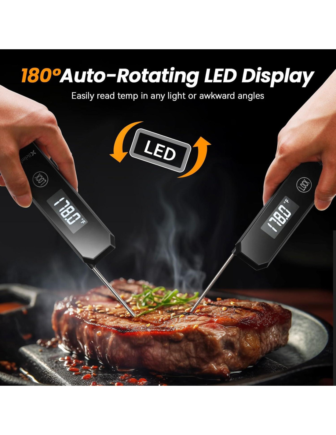 - Termómetro Digital de Fácil Lectura para Cocinar Dígitos grandes iluminados y pantalla retroiluminada que rota automáticamente 180 hacen que este termómetro de cocina sea fácil de leer de día o de noche, asegurando un uso sin problemas tanto para cocineros diestros como zurdos.
