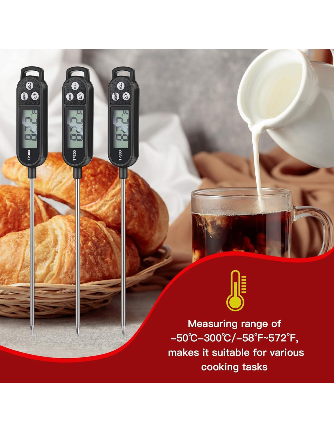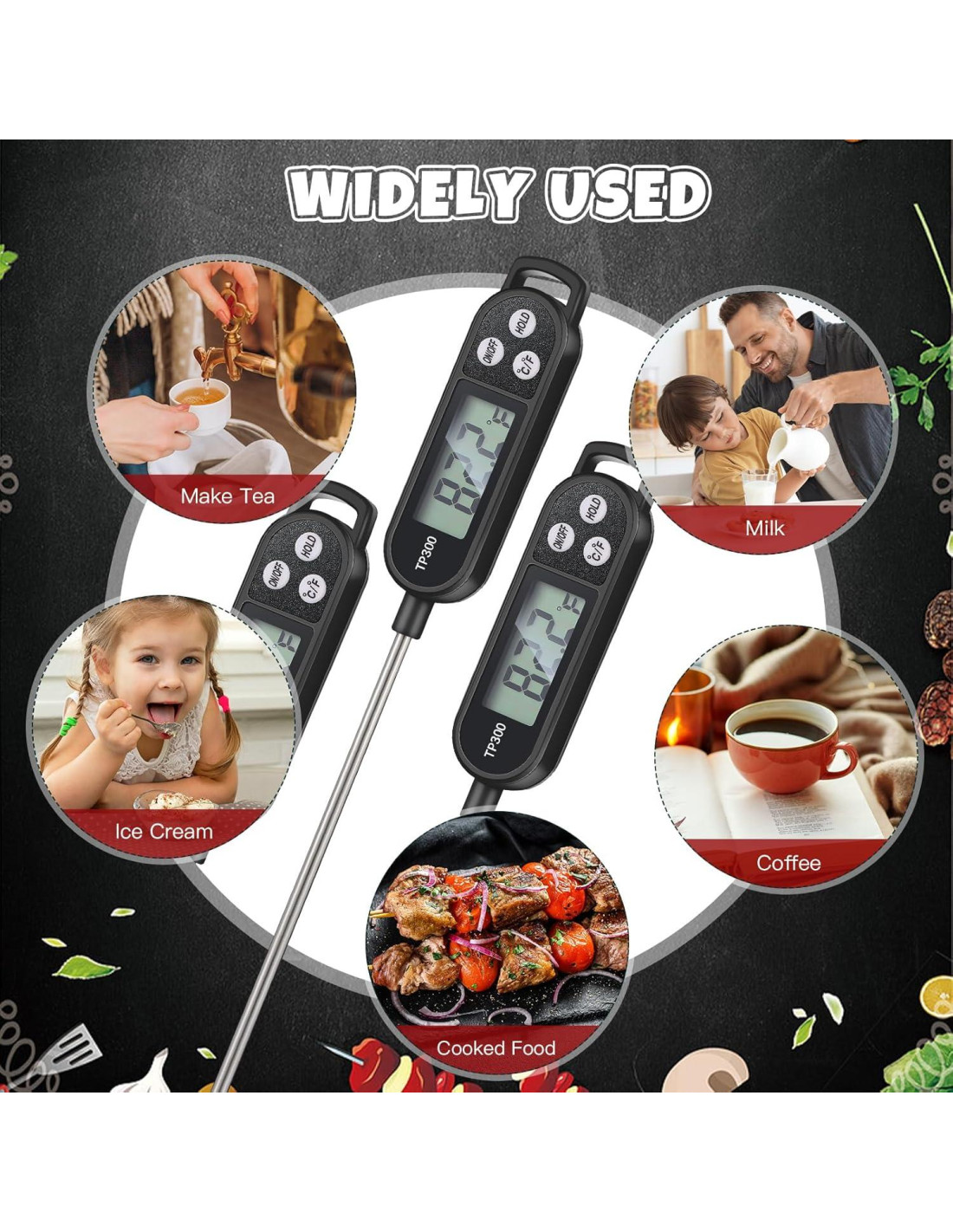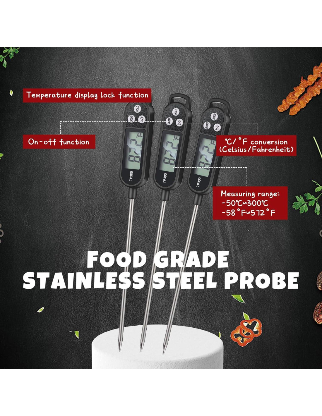 - Amplia Aplicación: el termómetro de cocina para cocinar tiene una multitud de usos; Ya sea que estés cocinando carne de res, cordero, cerdo, pavo o pollo, esta herramienta de cocina asegura una lectura de temperatura adecuada cada vez; Con su amplio uso, es una herramienta de cocina ideal para chefs profesionales y cocineros caseros por igual; El termómetro también sobresale en la preparación de café, leche, o incluso en la elaboración de queso y pan