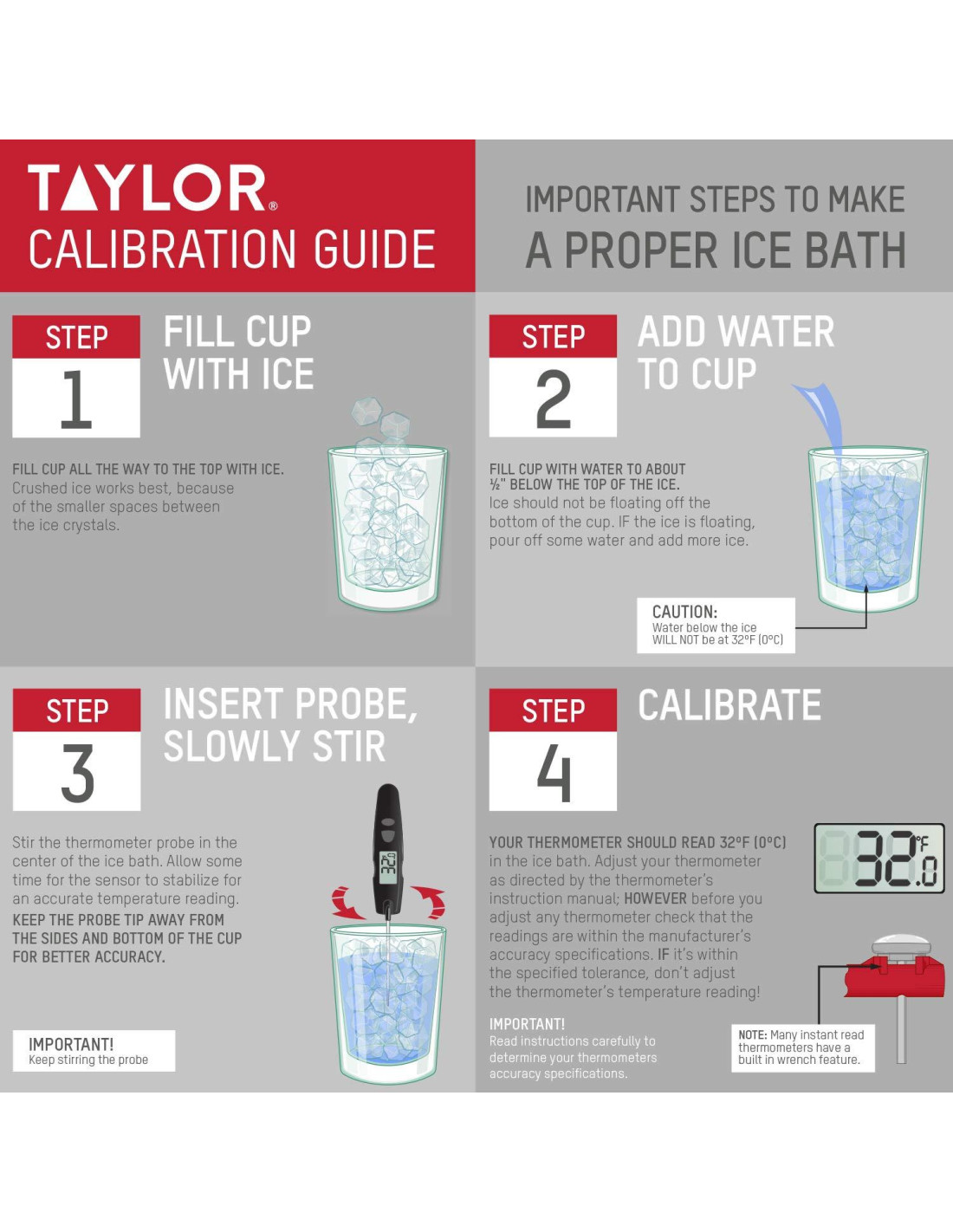 El Taylor 9867 no es un termopar ordinario. Con un rango de -40/572 grados F o -40/300 grados C, esta robusta sonda puede manejar cualquiera de tus requisitos de medición de temperatura. Más importante aún, tus lecturas se estabilizarán en 5 segundos o menos, permitiéndote mantener el ritmo rápido de tu cocina. El termómetro tiene un conveniente botón de retención que te permite congelar una temperatura incluso cuando se retira la sonda y también lee temperaturas en Fahrenheit y Celsius. Su precisión de grado profesional de +/- 2 grados F entre 14-212 grados F significa que nunca tendrás que dudar si tu comida está completamente cocida. Si el termómetro se cae, restablece la calibración en una mezcla de hielo. Asegura resultados seguros y bien cocidos cada vez. El 9867 emplea una sonda plegable de 1.5mm que protege los componentes vitales mientras el dispositivo no está en uso y hace que el termómetro sea más fácil de almacenar. Tiene una carcasa de plástico con una generosa pantalla retroiluminada azul de 0.6" que nunca te hará esforzarte para ver tus mediciones. El dispositivo también es recalibrable con una resolución de 0.1 grado. Dentro de la caja, encontrarás el termómetro 9867, un manual de instrucciones y 2 baterías AAA. NSF: el termómetro está certificado por NSF (Fundación Nacional de Saneamiento) por lo que cumple con todos los estándares requeridos para la calidad, durabilidad y limpieza de productos de consumo. Este termómetro tiene una garantía limitada de 1 año (excluyendo baterías).