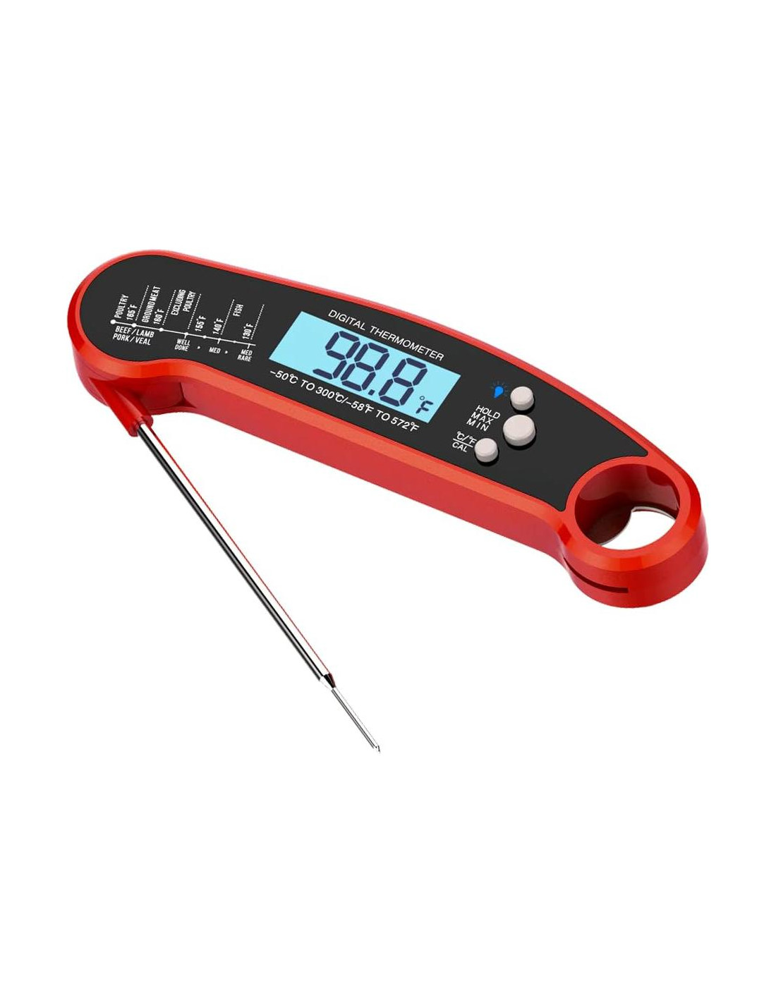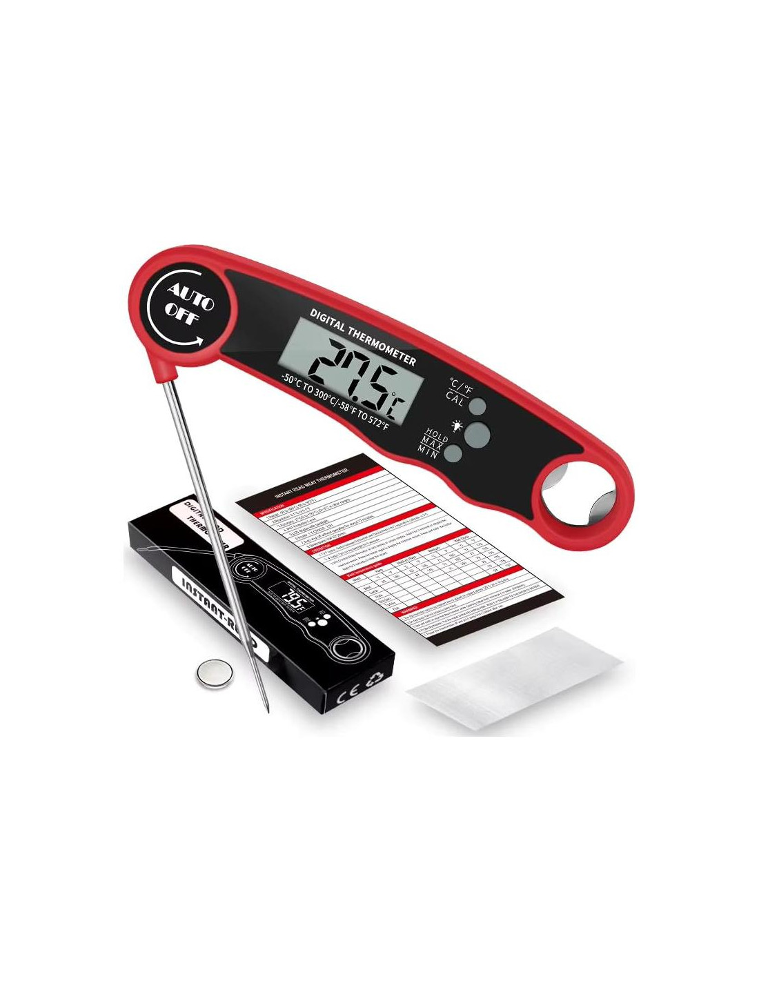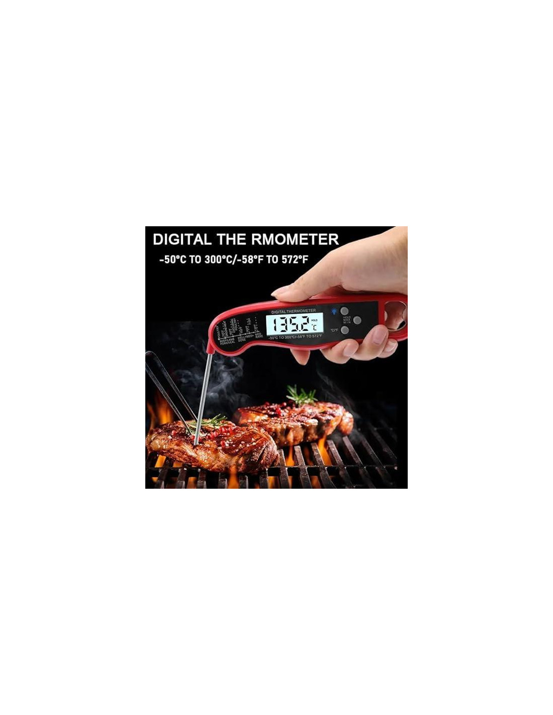 - [RETROILUMINACIÓN BRILLANTE Y CARACTERÍSTICAS INTELIGENTES] : Cuenta con una gran pantalla LCD retroiluminada para lecturas claras en luz tenue, una práctica función de sostenimiento para bloquear temperaturas y un fuerte imán en la parte posterior para un almacenamiento conveniente en tu nevera o parrilla.