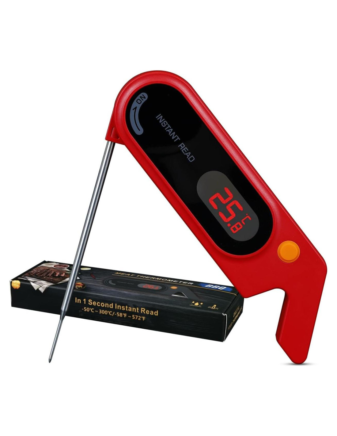 - Pantalla LED Más Clara: Adoptado con una pantalla LED innovadora que proporciona un brillo excepcional, este termómetro de carne digital es un compañero perfecto para tus aventuras de barbacoa al aire libre, asegurando que puedas hacer un seguimiento de tu cocción con facilidad en cualquier condición de iluminación.